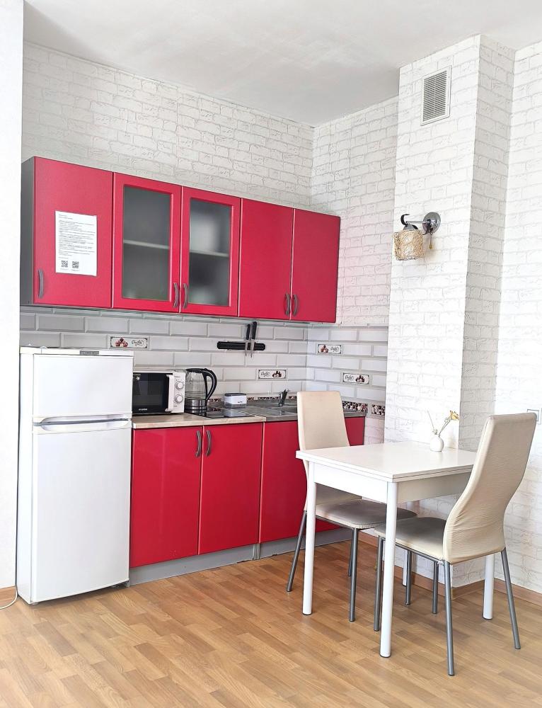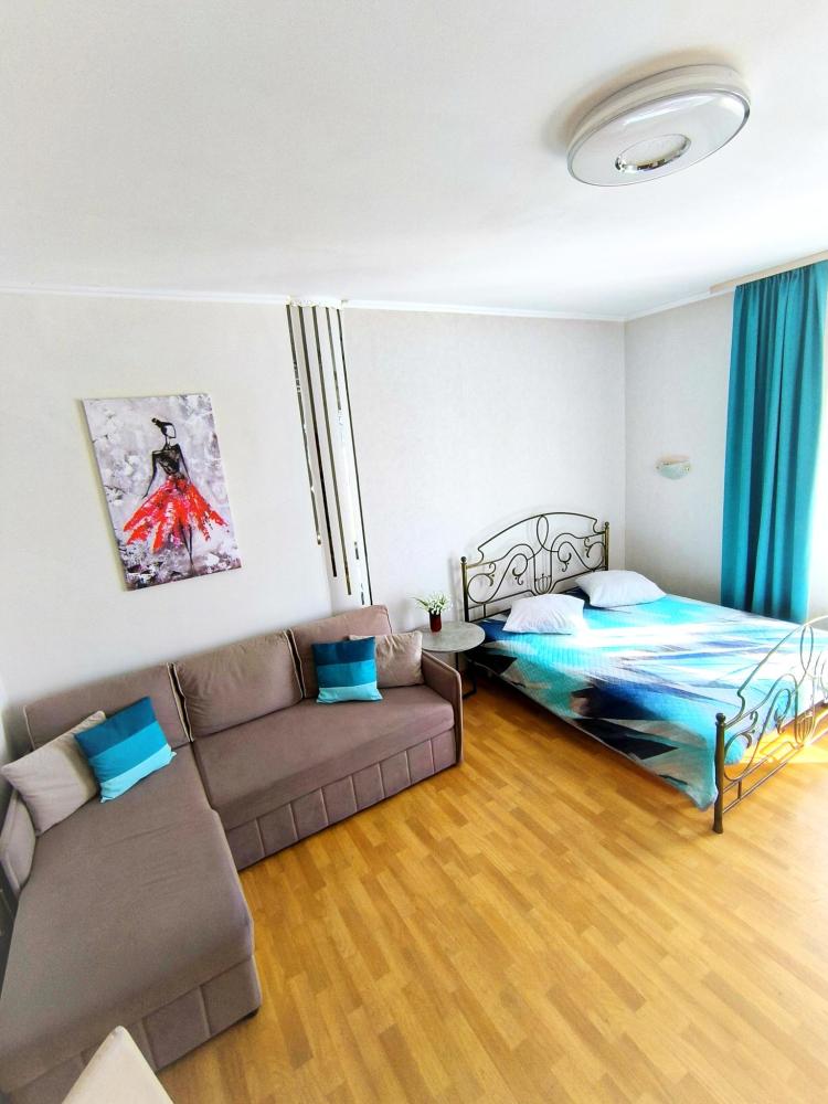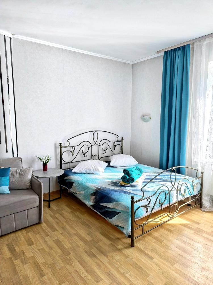 Уютные апартаменты студия, оборудованные всем необходимым для комфортного проживания. В апартаментах: двуспальная кровать, диван, телевизор, кухня с обеденной зоной, оборудованная всей необходимой техникой и посудой, ванная комната.