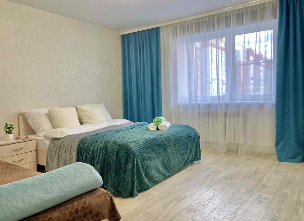 Двухкомнатные апартаменты для 4 гостей. Спальные места: диван и двуспальная кровать. В квартире чисто, уютно, есть все необходимое для комфортного проживания:мебель, бытовая техника, Wi-Fi, посуда, плита, холодильник, стиральная машинка, микроволновка, гладильная доска, утюг, постельные принадлежности, полотенца, индивидуальные средства личной гигиены.