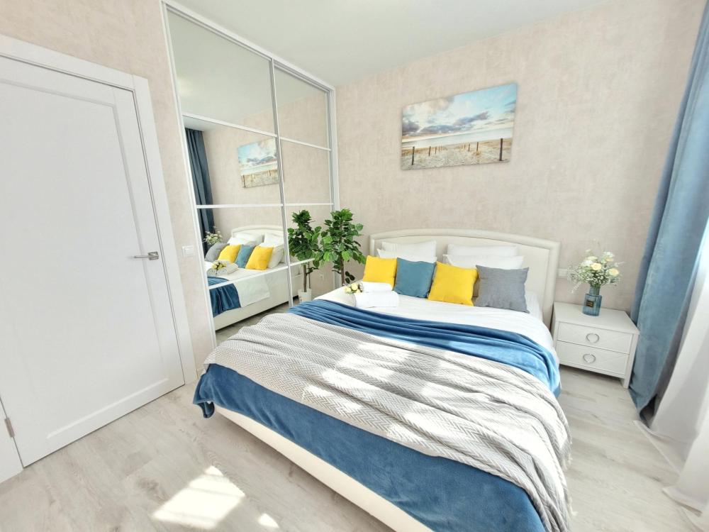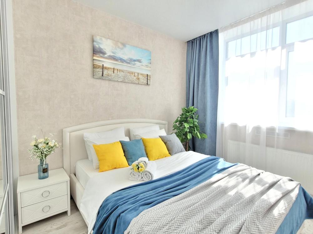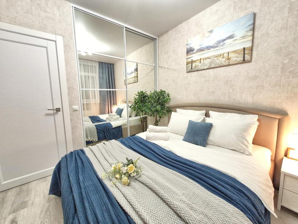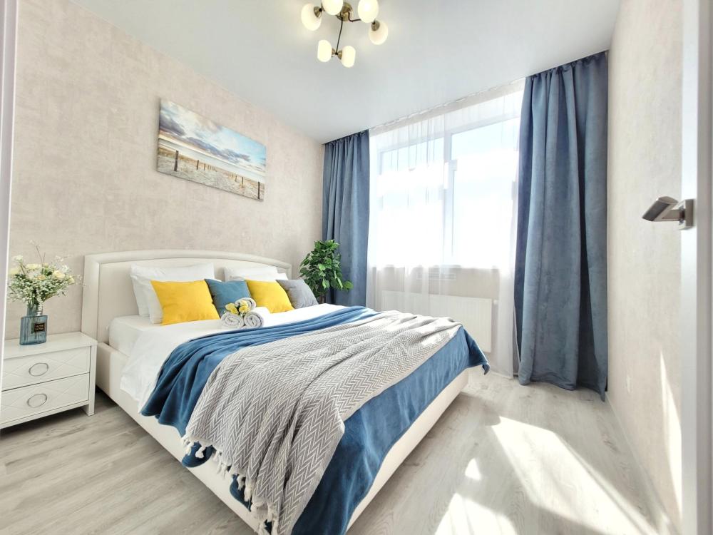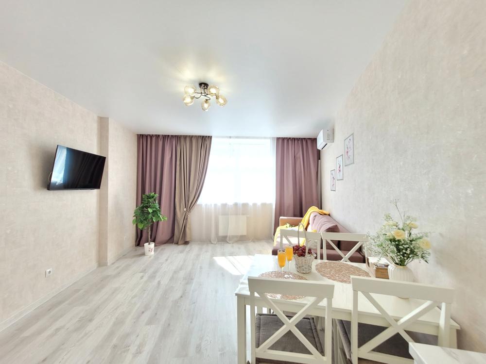 Предлагается новая, красивая квартира, с современным ремонтом, в заречном микрорайоне города, формата 1+. Дом расположен в новом современном ЖК «Европейский берег», на берегу реки "Тура". Вдоль всего микрорайона пешеходный бульвар со спорт-ядром, зонами для отдыха и прибрежным парком. Дворы закрытые со сквозными парадными, видеонаблюдением и охраной. Открывается прекрасный вид на реку. Удобная транспортная развязка в любую точку города: - 15 минут до ЖД вокзала на авто; - 25 минут до Аэропорта. - 10 минут до центра города, городской набережной и моста Влюблённых. - 7 минут до Аквапарка «Лето Лето» - 15 минут до горячего источника «Волна». Остановки общественного транспорта в 4-х минутах ходьбы в любую точку города. В шаговой доступности находится ТЦ "Зелёный берег", круглосуточная "Лента", а также множество магазинов, пекарни, кафе, рестораны. Придомовая территория оборудована парковочными местами, где всегда найдется место для вашего авто. Размещение до 4-х гостей. В квартире большая двуспальная кровать с хорошим ортопедическим матрасом (160*200), и раскладной диван (150*200). Имеется всё необходимое для вашего комфортного проживания: - Кондиционер; - Горячая вода круглый год (своя котельная); - Свежее постельное бельё и полотенца; - На кухне имеется вся необходимая посуда для приготовления и принятия пищи; СВЧ-печь, эл.плита с духовкой, холодильник, электрочайник. А также чай, сахар, соль, специи. - Стиральная машина, гладильная доска, сушилка для белья, утюг. - В санузле в наличии – туалетная бумага, освежитель воздуха, жидкое мыло, индивидуальные средства гигиены, фен. - Телевизор с функцией Smart и wi-fi до 100 мБит/с. - Уборка, смена белья, а также дезинфекция квартиры проводится после каждого гостя.
