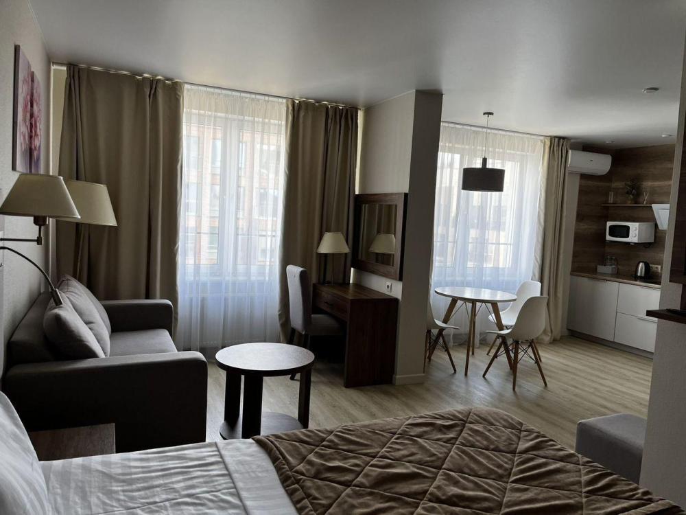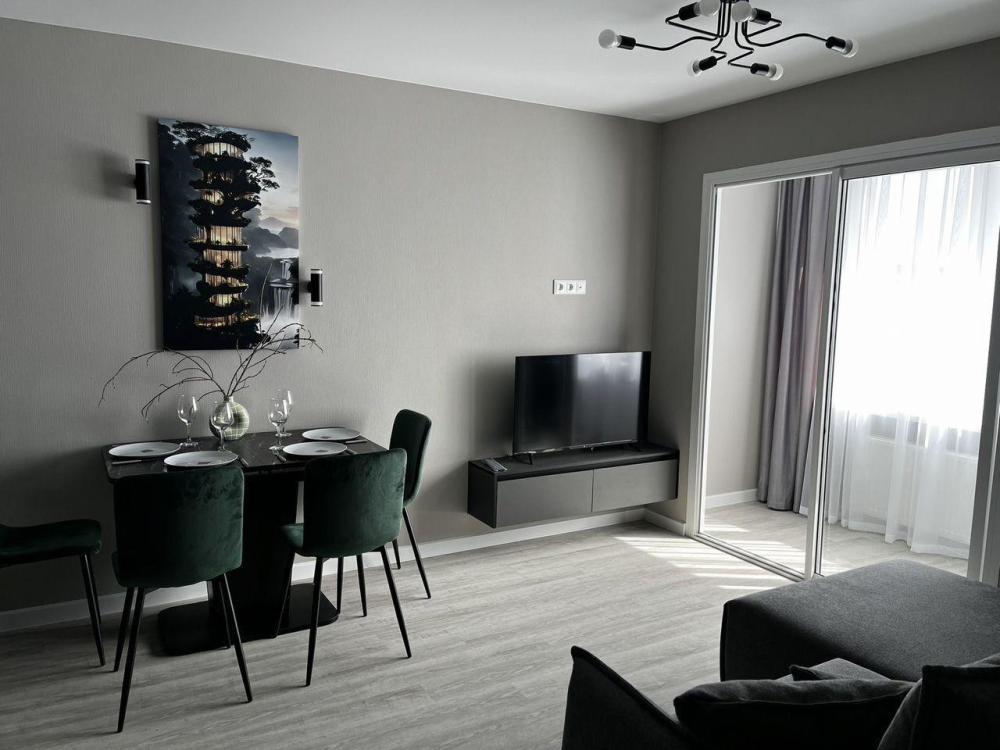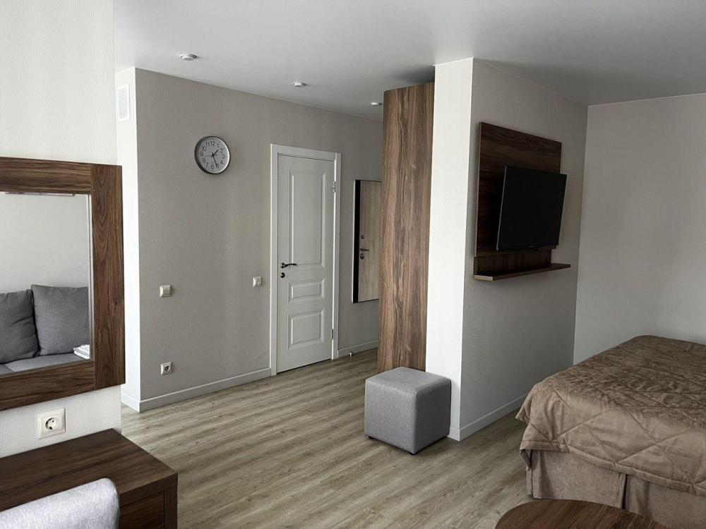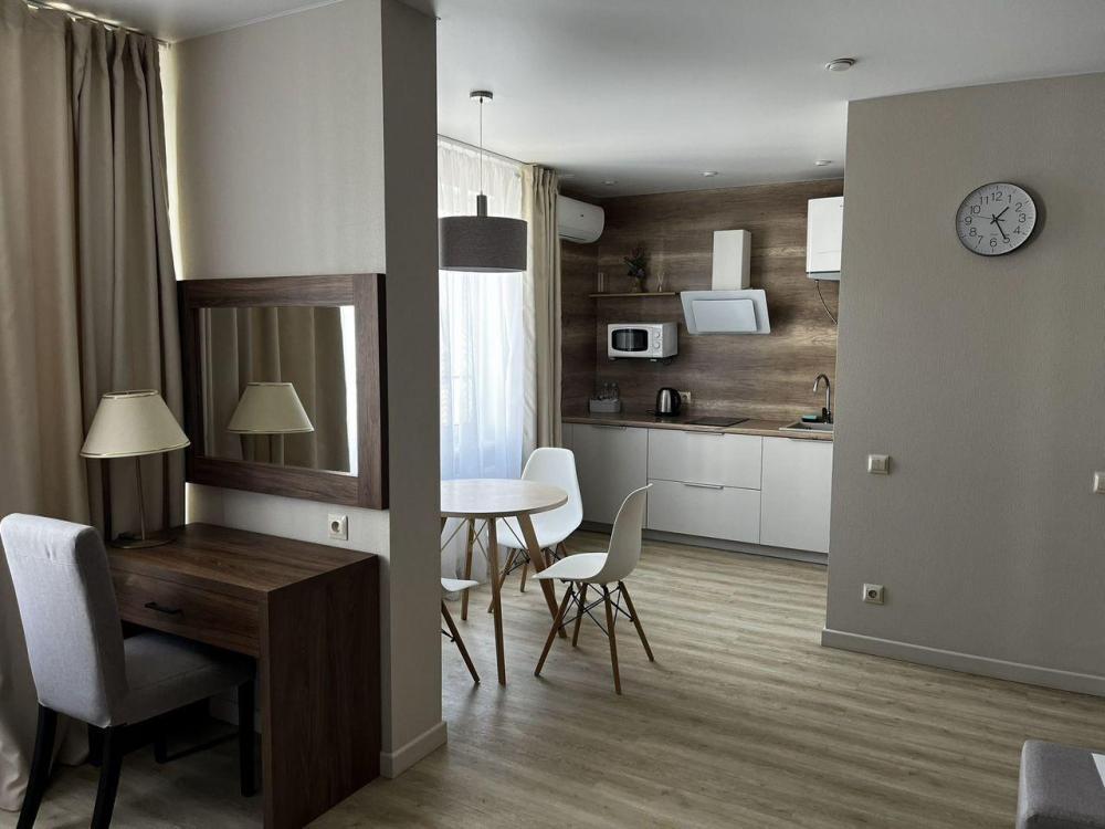 Уютные апартаменты в которых есть всё необходимое для комфортного проживания. В апартаментах: двуспальная кровать, диван, WI-FI, ТV, сплит-система, необходимая бытовая техника, посуда, постельные принадлежности, средства гигиены.