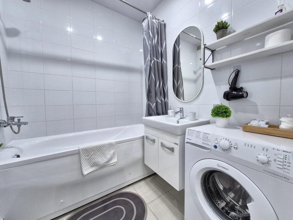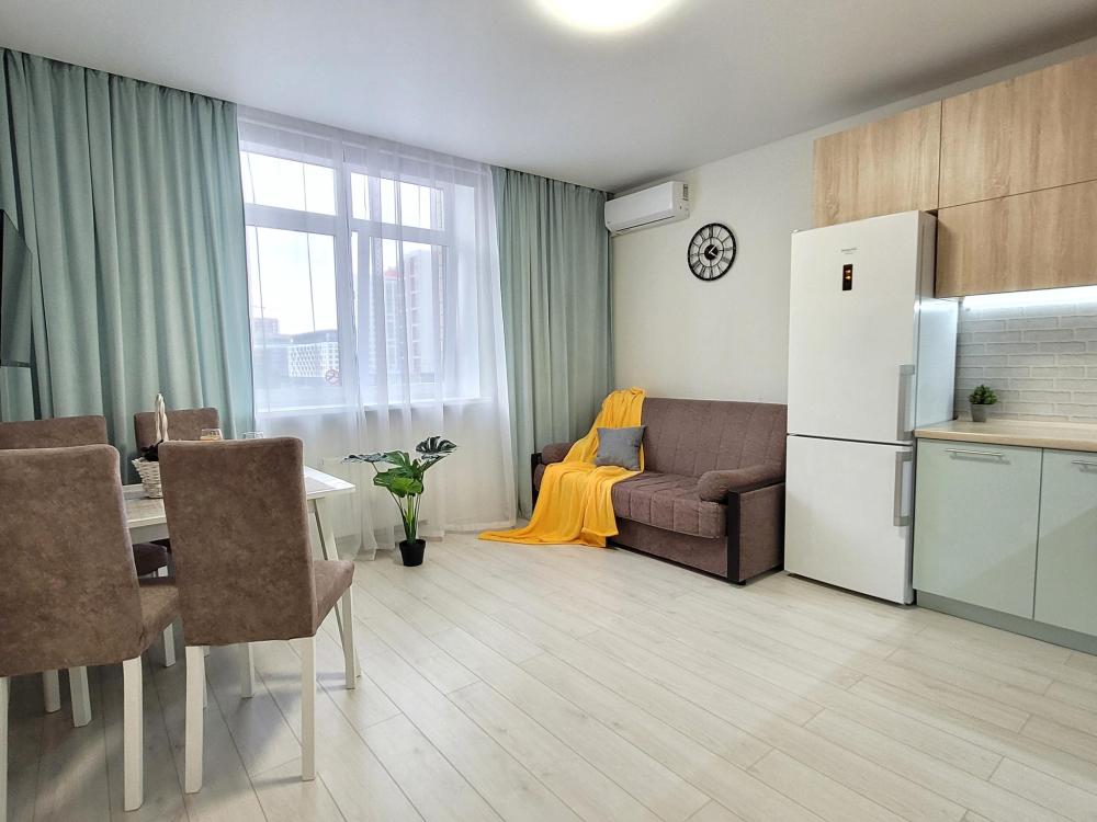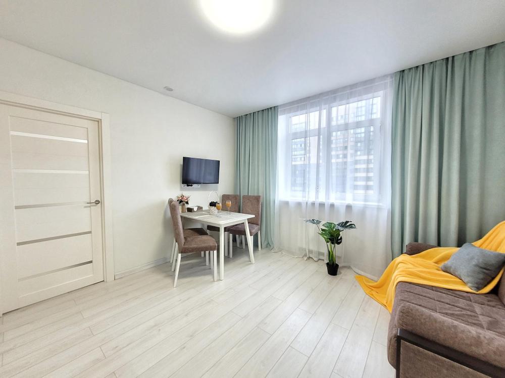 Предлагается новая, красивая квартира, с современным ремонтом, в заречном микрорайоне города, формата 1+. Дом расположен в новом современном ЖК «Европейский берег», на берегу реки "Тура". Вдоль всего микрорайона пешеходный бульвар со спорт-ядром, зонами для отдыха и прибрежным парком. Дворы закрытые со сквозными парадными, видеонаблюдением и охраной. Удобная транспортная развязка в любую точку города: - 15 минут до ЖД вокзала на авто; - 25 минут до Аэропорта. - 10 минут до центра города, городской набережной и моста Влюблённых. - 7 минут до Аквапарка «Лето Лето» - 15 минут до горячего источника «Волна». Остановки общественного транспорта в 4-х минутах ходьбы в любую точку города. В шаговой доступности находится ТЦ "Зелёный берег", круглосуточная "Лента", а также множество магазинов, пекарни, кафе, рестораны. Придомовая территория оборудована парковочными местами, где всегда найдется место для вашего авто. Размещение до 4-х гостей. В квартире большая двуспальная кровать с хорошим ортопедическим матрасом (160*200), и раскладной диван (150*200). Имеется всё необходимое для вашего комфортного проживания: - Кондиционер; - Горячая вода круглый год (своя котельная); - Свежее постельное бельё и полотенца; - На кухне имеется вся необходимая посуда для приготовления и принятия пищи; СВЧ-печь, эл.плита с духовкой, холодильник, электрочайник. А также чай, сахар, соль, специи. - Стиральная машина, гладильная доска, сушилка для белья, утюг. - В санузле в наличии – туалетная бумага, освежитель воздуха, жидкое мыло, индивидуальные средства гигиены, фен. - Телевизор с функцией Smart и wi-fi до 100 мБит/с. - Уборка, смена белья, а также дезинфекция квартиры проводится после каждого гостя.