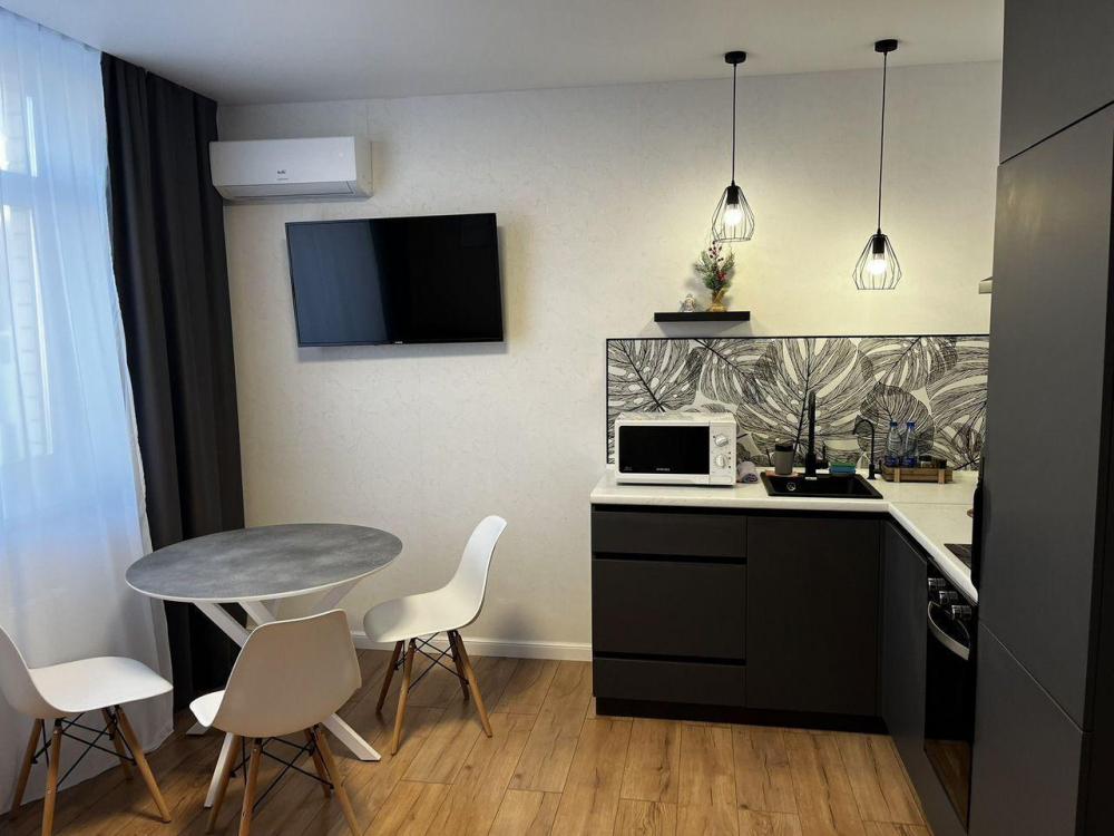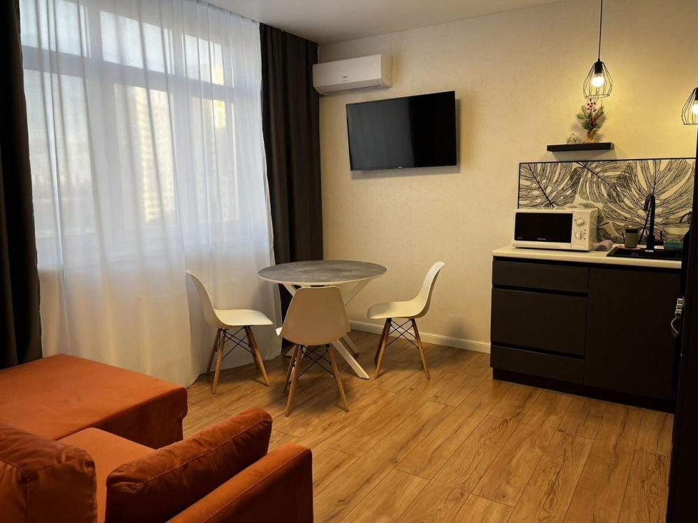 Уютные однокомнатные апартаменты. Квартира светлая и чистая, уютная с хорошим ремонтом, есть все необходимое для комфортного проживания: двуспальная кровать, диван, Wi-Fi, ТV (2 телевизора), сплит-система, необходимая бытовая техника, посуда, постельные принадлежности, средства гигиены.