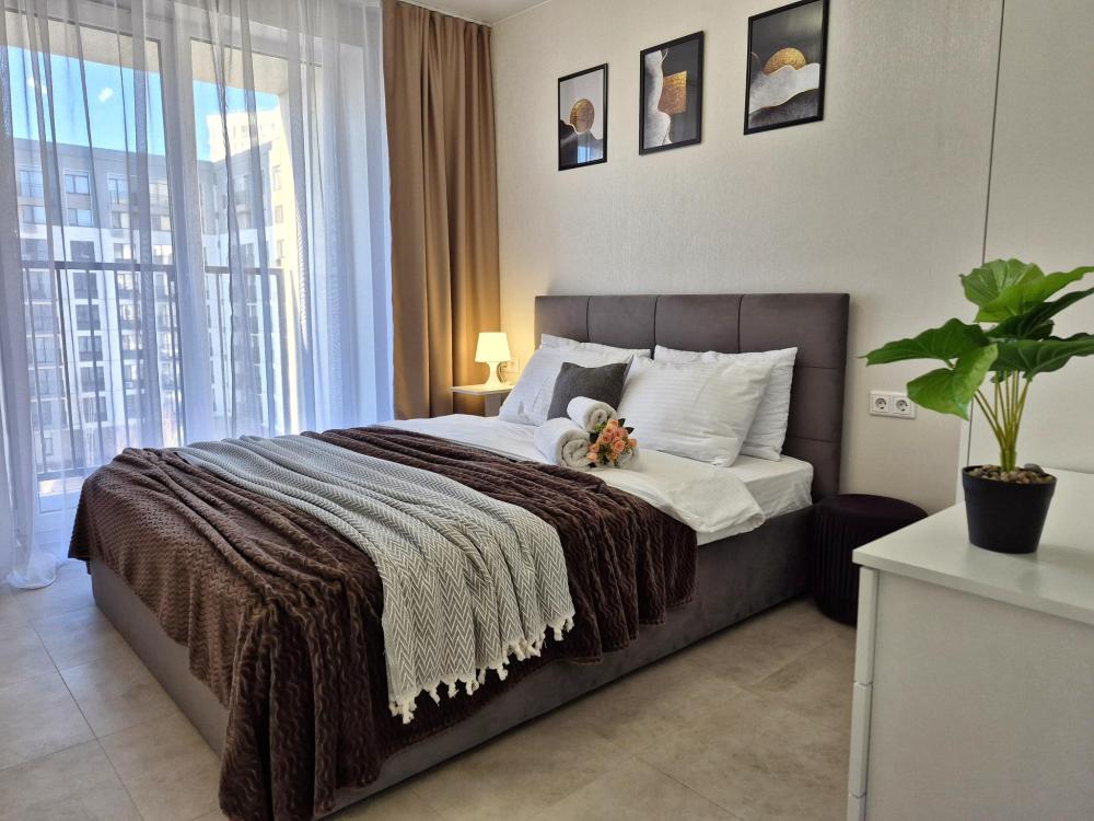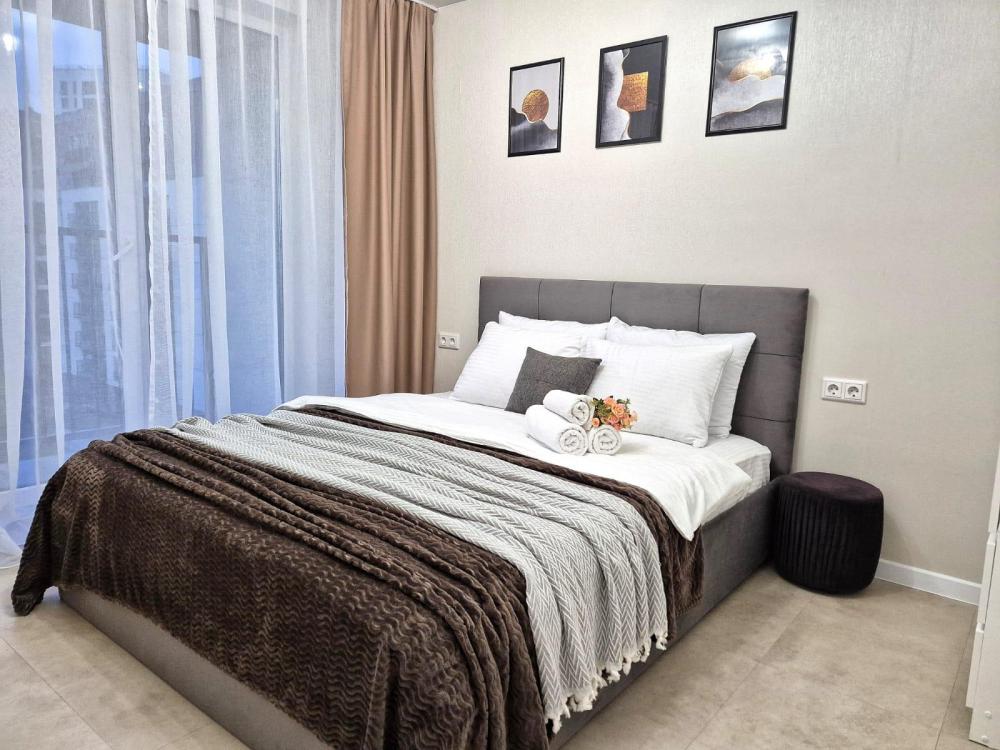 Предлагается новая, красивая квартира в ЖК "Видный", в востoчнoм paйoнe города, формата 1+. В вашем распоряжении уютная спальня и кухня - гостиная. Размещение до 4-х гостей. В квартире большая двуспальная кровать, с хорошим ортопедическим матрасом (160*200), раскладной диван (150*200) Удобнaя трaнспopтнaя paзвязкa в любую точку гoрoда. - 20 минут до ЖД вокзала и аэропорта на авто; - 25 минут до горячих источников и аквапарка "Лето Лето"; - 15 минут до центра города. Удобный выезд на объездную. До Федерального центра нейрохирургии, Мед.города, Мать и дитя - 10 минут на авто. В шаговой доступности множество сетевых магазинов, кафе, пекарни. Поблизости - Теннисный корт "Лидер", Ледовый каток "Рубиновец", "ДомЭкспо", а также ТЦ "Остров". Придомовая территория оборудована прогулочными зонами, современными детскими площадками, закрытыми дворами; и парковочными местами, где всегда найдётся место для вашего авто. Имеется всё необходимое для вашего комфортного проживания: Кондиционер; Водонагреватель, на время отключения ГВС; Свежее постельное бельё и полотенца; На кухне имеется вся необходимая посуда для приготовления и принятия пищи; СВЧ-печь, эл.плита с духовкой, холодильник, электрочайник. Стиральная машина, гладильная доска, сушилка для белья, утюг, В санузле в наличии туалетная бумага, освежитель воздуха, жидкое мыло, фен и т.д. Телевизор с цифровым подключением и wi-fi до 200 мБит/с. Уборка, смена белья, а также дезинфекция квартиры проводится после каждого гостя. Условия заселения: Бесконтактное заселение (24/7) Вы сможете заселиться в удобное для вас время. Квартира не сдаётся для увеселительных мероприятий. Категорически запрещено курение на всей площади квартиры (на балконах тоже) Строго соблюдаются часы тишины. Запрещено проживание с животными. Не заселяются гости в любом опьянении. Также При заселении необходимо выслать фото паспорта. Просим с пониманием отнестись к данному требованию и если вы не намерены предоставить документ, то заселение, увы, будет невозможно. Депозит (страховой залог) будет возвращён в день выезда после полной уборки квартиры при соблюдении правил проживания и сохранности имущества. Количество проживающих гостей должно соответствовать заявленному при бронировании. В подъезде установлены видеокамеры. Заезд после 14.00; выезд до 12.00 часов. Ранний заезд и поздний выезд оговариваются индивидуально за дополнительную плату. Предоставляем отчётные документы. Если Вы цените чистоту и уют, мы всегда ждём вас в гости!