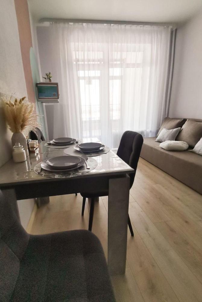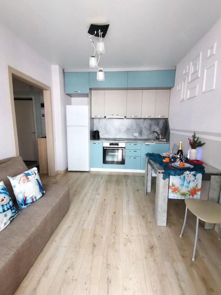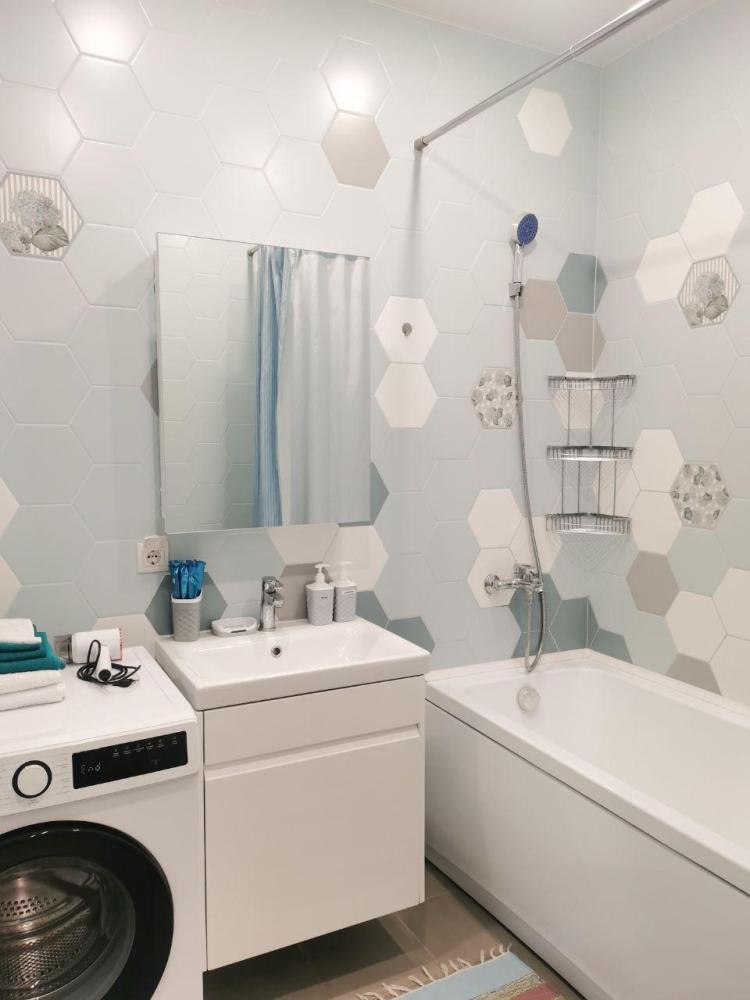 Двухкомнатные апартаменты подойдут для размещения до 6 человек. Спальные места: 2 двуспальные кровати, раскладной диван. Имеется все необходимое для комфортного проживания: кондиционер, телевизор, высокоскоростной Wi-Fi, стиральная машинка, утюг, фен, сушилка для белья, гладильная доска, письменный стол. На кухне: плита, холодильник, чайник, СВЧ-печь, посуда и кухонные принадлежности. Постельное белье, полотенца, средства гигиены, средства для ухода за детьми и игрушки предоставляются. Охраняемый двор, бесплатная парковка, видеонаблюдение. Также во дворе есть детская и спортивная площадки, большой парк для прогулки, дизайнерские и архитектурные формы.