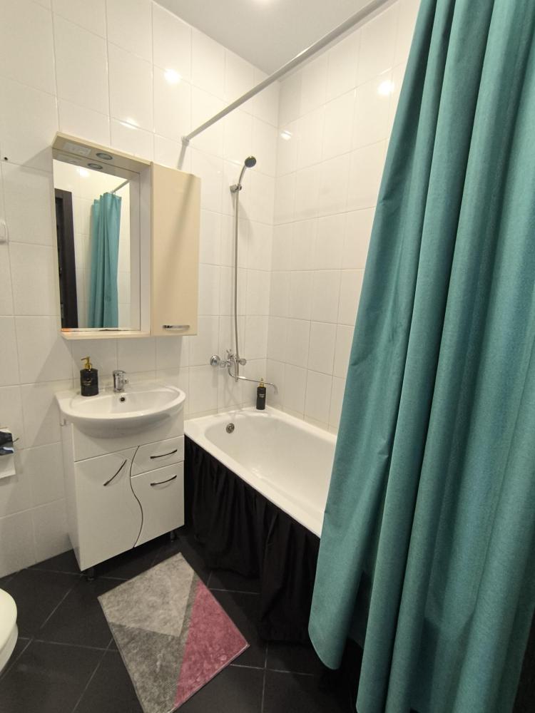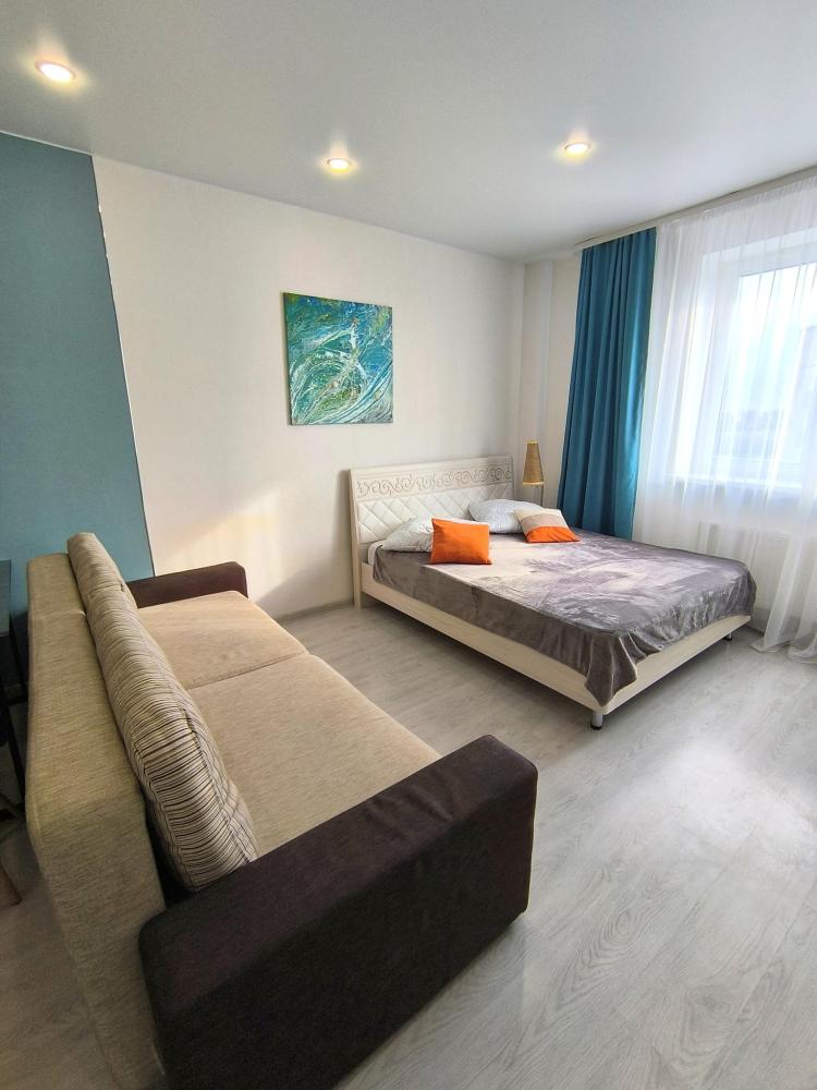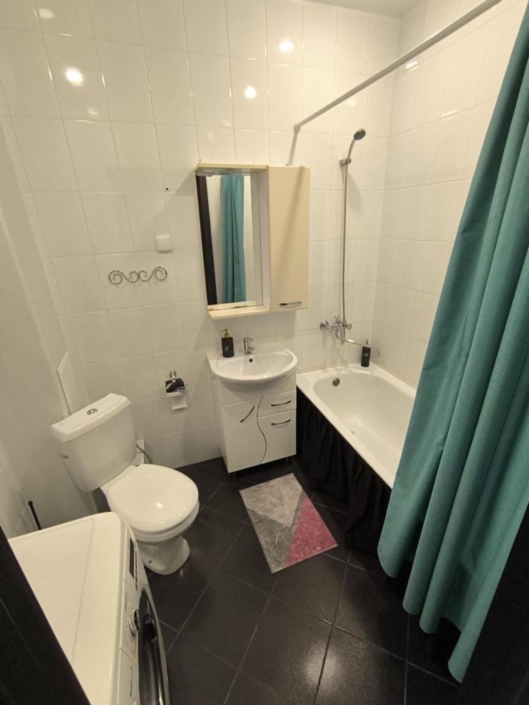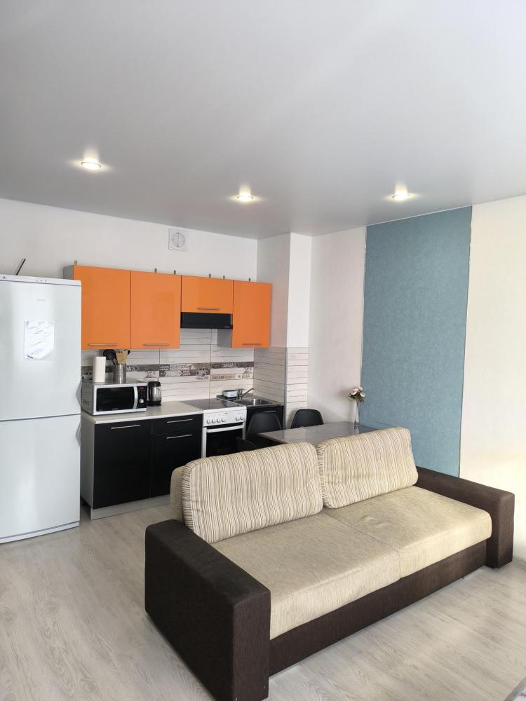 Уютные апартаменты студия, оборудованные всем необходимым для комфортного проживания. В апартаментах: двуспальная кровать, диван, телевизор, кухня с обеденной зоной, оборудованная всей необходимой техникой и посудой, санузел с ванной и стиральной машиной.