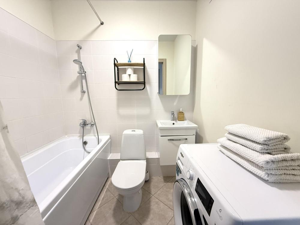 В апартаментах свежее постельное белье, полотенца на каждого гостя, индивидуальные средства гигиены (шампунь, бальзам для волос, гель для душа), гель для стирки, чай, кофе и сахар (бесплатно), Smart ТВ, Wi-Fi.