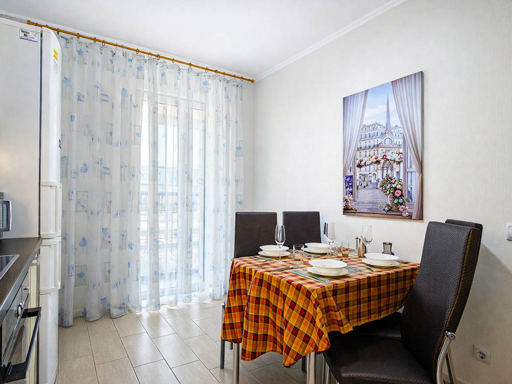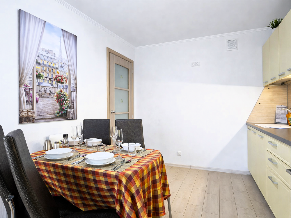 Компания «Добрый Дом» Всё для комфорта — от тапочек до стиральной машины Бесконтактное заселение Отчетные документы для командировок Всегда на связи 24/7 — поможем с любым вопросом! О квартире Светлая и уютная 1-комнатная квартира расположена на 5 этаже 17-этажного дома (есть лифт). Район — деловой центр города, пересечение ул. 50 лет Октября и Одесской. Во дворе — спортивные зоны, детская площадка и тихие места для отдыха. Рядом школы, университеты, поликлиника, магазины и удобная транспортная развязка. Подходит туристам, семейным гостям, командировочным, бизнес-путешественникам, соло-гостям и для романтических вечеров. Спальные места Размещение — до 3 гостей: • Двуспальная кровать • Диван-кровать Мы предоставляем всё необходимое! Гигиена и комфорт: • Чистое постельное бельё • Мыло, гель для душа, шампунь • Тапочки и зубные наборы - за доп. плату • Полотенца • Фен Кухня: • Холодильник • Электроплита • Чайник и микроволновка • Посуда и приборы Стирка и уход за вещами: • Стиральная машина • Утюг и гладильная доска • Сушилка • Вешалки В шаговой доступности • Остановка общественного транспорта • Поликлиника, школы, детские сады, университет • Детская площадка и спорт-зоны • Кафе, рестораны, магазины, досуг Дополнительно Предоставляем отчётные документы Проживание с питомцами — по согласованию (доплата от 1000 руб.) Условия проживания Заезд: с 15:00 | Выезд: до 12:00 Залог: от 2000 руб. (в праздники до 5000 руб.) Наличие паспорта обязательно Без вечеринок и курения Минимальный возраст для заселения — 21 год При нарушении правил проживания — залог и оплата не возвращаются Отмена брони менее чем за 72 часа — предоплата не возвращается Количество людей в квартире не больше, чем спальных мест Уходя из квартиры дверь нужно закрывать на замок. Утеря ключей от объекта проживания и испорченное имущество восстанавливаются за счет и силами гостя, оформленного при бронировании Мы на связи ежедневно с 8:00 до 22:00 Компания «Добрый Дом» — с любовью к вашему комфорту