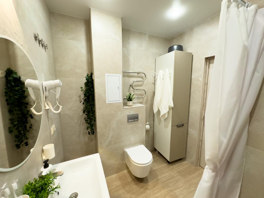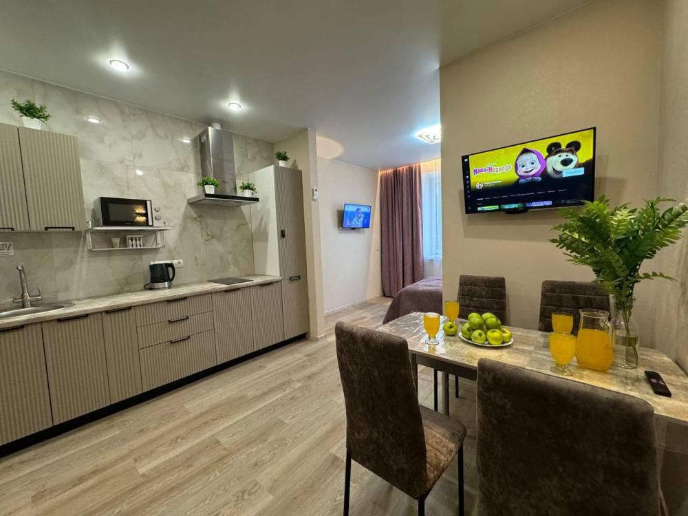 Всё уже готово для вашего пребывания: ✔ Современная мебель, свежее бельё и полотенца ✔ Полная кухня (плита, холодильник, СВЧ, посуда) ✔ Техника: Wi-Fi, ТВ, стиральная машина, сушилка для белья, фен. ✔ Бесплатная парковка и отличная локация — всё рядом! ✔ Банный вафельный халат - за отдельную плату! ✔ Удобные спальные места: двуспальная кровать, двуспальный диван