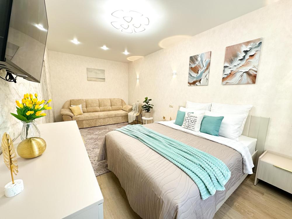 Всё уже готово для вашего пребывания: ✔ Современная мебель, свежее бельё и полотенца ✔ Полная кухня (плита, холодильник, СВЧ, посуда) ✔ Техника: Wi-Fi, ТВ, стиральная машина, сушилка для белья, фен. ✔ Бесплатная парковка и отличная локация — всё рядом! ✔ Банный вафельный халат - за отдельную плату! ✔ Удобные спальные места:двуспальная кровать, двуспальный диван