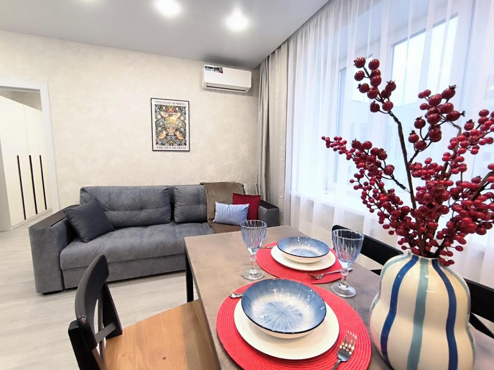Добро пожаловать в стильную 1кв Барбарис в Новом ЖК Централь ! Звоните! Комфорт, красота, чистота на высоком уровне. Все оценки гостей 5 из 5! Есть все необходимое - от посуды до фена. Квартира с кондиционером. Во дворе ЖК находится озеро с уточками, спортивные и детские площадки. Рядом - ТЦ Окей, сквер Петра Потапова, Загородный сад, до Цветного бульвара в Центре города, до Набережной 14 мин на авто. Много классных мест для прогулок и красивых фото. В квартире есть всё для комфортного проживания. Постельное белье, полотенца, шампунь, мыло, фен, утюг, микроволновка, холодильник, плита, чай, сахар, ТВ, Wi-Fi. ВМЕСТИМОСТЬ - 4 ГОСТЯ. Заезд c 14-00 . Выезд до 12-00 следующего дня. Заселение бесконтактное, возможно и ночью (но оформление бронирований, прием звонков и расчеты в рабочее время с 08:00-21:00) Курение и вечеринки в квартире запрещены - штраф во всю стоимость залога! Заселение по предъявлении паспорта. Возвратный залог 2000. В новый год и другие праздники залог 5000р! По договоренности и с доплатой: -Ранний заезд/Поздний выезд, -Личный выезд менеджера на заселение, -Дополнительный комплект постельного белья/полотенец.