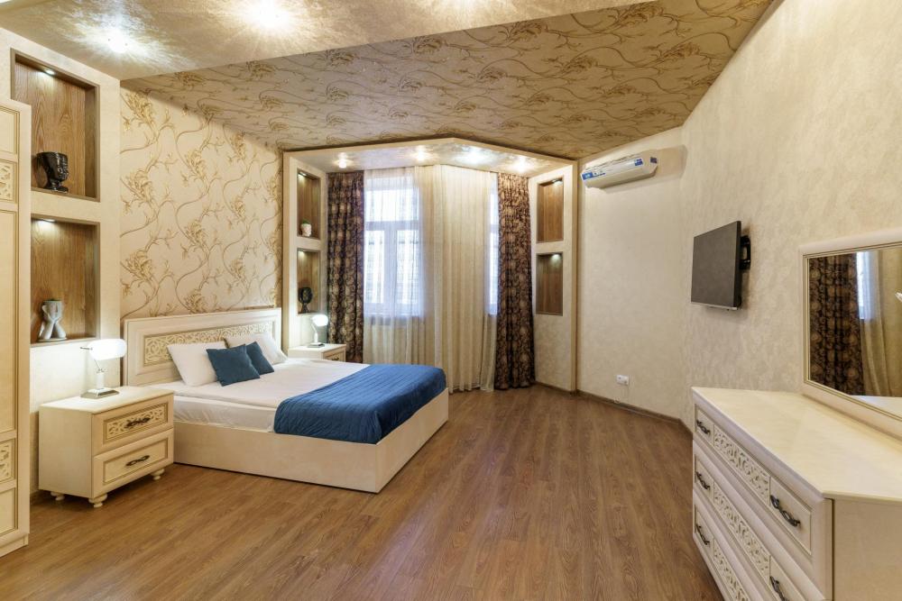 Квартира на 10 этаже 25 жилого дома. В квартире выполнен авторский ремонт. В комнате большая двуспальная кровать и диван. Большой плазменный ТВ с кабельными каналами. Есть большая гардеробная. В кухне установлен кухонный гарнитур, стол, стулья, встроенная бытовая техника: электроплита, электрический чайник, микроволновая печь, духовой шкаф. Большой застекленный балкон. На момент заезда в квартире имеется: высокоскоростной бесплатный WI-FI, вся необходимая посуда, питьевая вода "Кристалл", полотенца, тапочки, чай, кофе, сахар, гель для душа, шампунь, мыло, тапочки, туалетную бумагу, освежитель воздуха -средство для мытья посуды и губка для посуды.