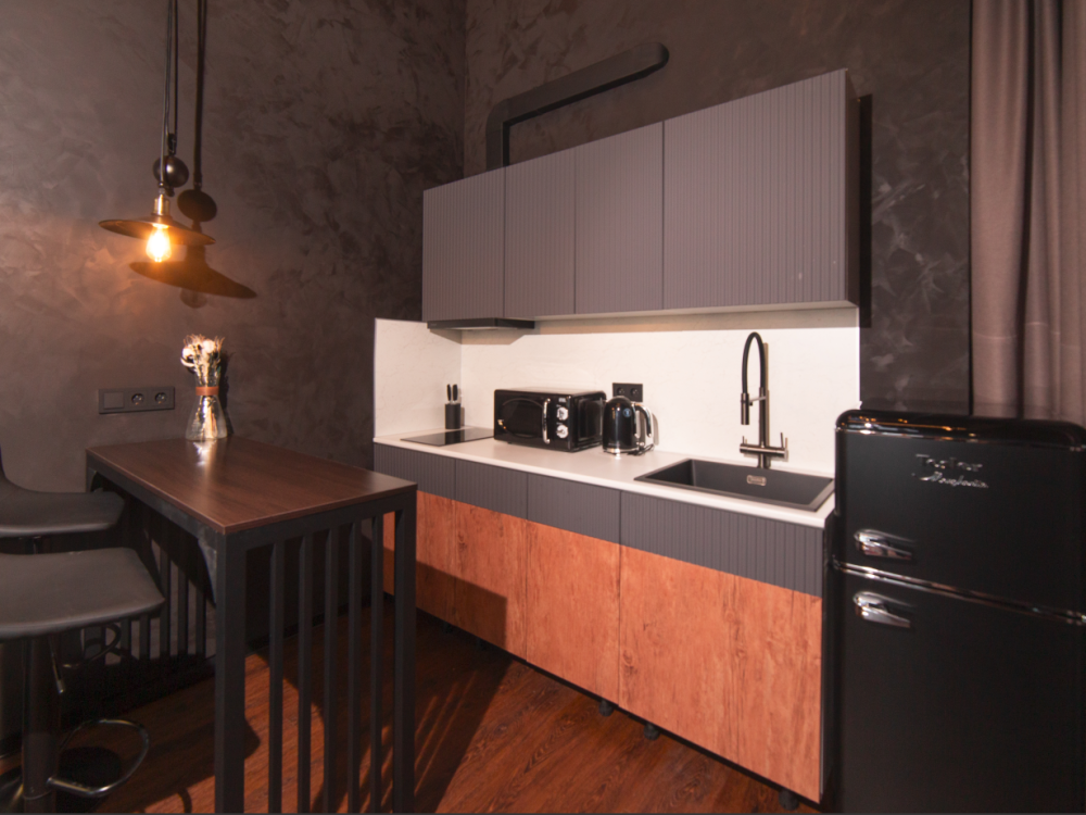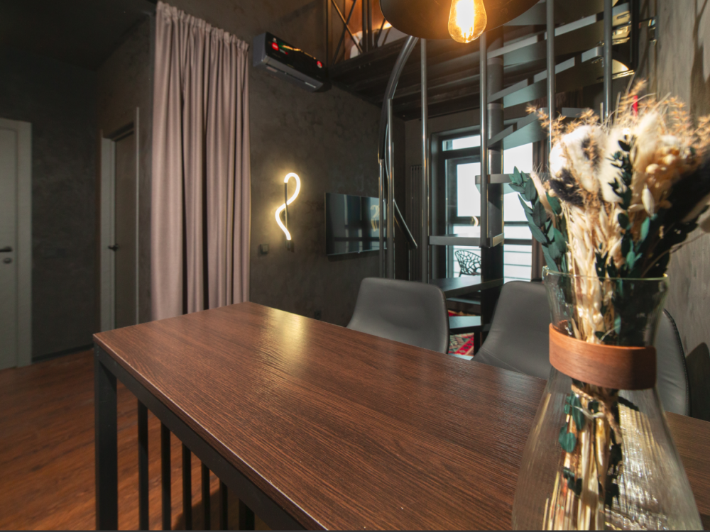 Дизайнерская лофт‑квартира на высоте птичьего полёта: пространство, где рождается вдохновение Представьте момент, когда вы переступаете порог — и перед вами раскрывается уникальное двухуровневое пространство, воплощающее дух современного мегаполиса. Это не просто квартира, а настоящая городская резиденция в стиле лофт, где каждая деталь продумана до мелочей. Здесь брутальная эстетика сочетается с безупречным комфортом, а панорамные виды становятся живым фоном вашей повседневной жизни. Визуальная симфония: вид, который меняет восприятие города Квартира расположена на 23‑м этаже — на высоте, где город раскрывается во всей своей красе. Каждое окно здесь — это живая картина, которая меняется в зависимости от времени суток: Утром — река, окутанная лёгкой дымкой, пробуждается под первыми лучами солнца. Днём — городской пейзаж с чёткими линиями зданий и зелёными островками парков. На закате — небо превращается в полотно художника: оттенки золота, пурпура и алого сливаются в неповторимую палитру. Ночью — город зажигает миллионы огней, создавая иллюзию звёздного неба, спустившегося на землю. Прямо под окнами раскинулся уютный искусственный пруд, где грациозно плавают утки. Это удивительное сочетание городской динамики и природной гармонии: вы находитесь в самом центре Тюмени, но можете наслаждаться спокойствием, наблюдая за неспешной жизнью пернатых соседей. Пространство, созданное для жизни Двухуровневая планировка (общая площадь 36 м²) позволяет грамотно зонировать пространство и создать атмосферу уединения даже в большой компании. Первый уровень: Гостиная с диваном, способным вместить 1 гостя или двоих детей (110*180). Дизайн в индустриальном стиле: открытые балки и металлические акценты. Кухня-столовая с современной техникой премиум‑класса: холодильник ; индукционная плита ; микроволновая печь. Полностью укомплектованная посуда и кухонные принадлежности: от ножей профессиональной заточки до сервиза на 6 персон. Второй уровень: Главная спальня с двуспальной кроватью (180 × 200 см), ортопедическим матрасом и системой затемнения штор. Гостевая зона с дополнительным спальным местом на антресоли(кровать 160 × 200 см). Ванная комната с душевой кабиной и премиальной сантехникой. Комфорт без компромиссов Мы позаботились о том, чтобы ваше пребывание было максимально удобным: Бесконтактное заселение — заезжайте в любое время после 15:00, используя кейбокс. Инструкция по заселению отправляется заранее. Чистота и гигиена — профессиональная уборка перед каждым заездом, свежее постельное бельё и полотенца. Связь и развлечения — высокоскоростной Wi‑Fi, Smart TV с подпиской на стриминговые сервисы. Дополнительные удобства: стиральная машина сушилкой напольной; утюг и гладильная доска; фен ; Особые условия и детали Время заезда: после 15:00. Время выезда: до 12:00. Документы: выдаём полный пакет отчётных документов для командировочных. Проживание с питомцами: возможно по предварительному согласованию. Взимается 500 Р за весь период бронирования. Для гостей младше 21 года: требуется предварительное согласование. Парковка: бесплатная стоянка на территории ЖК. Локация: сердце города с атмосферой уединения Квартира находится на первой береговой линии, что даёт уникальные преимущества: Шаг до воды — прогуляйтесь вдоль пруда или посидите на скамейке, 