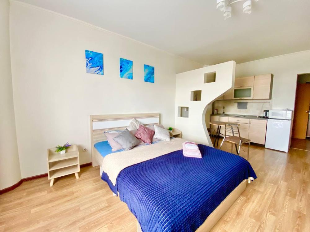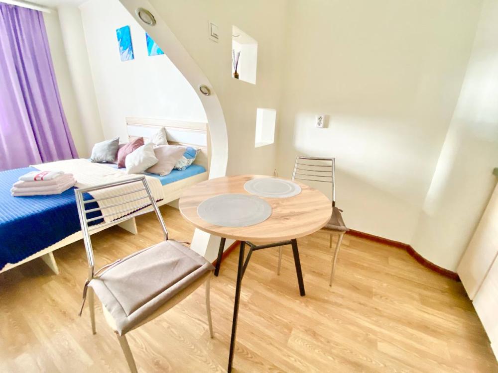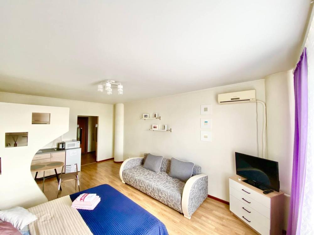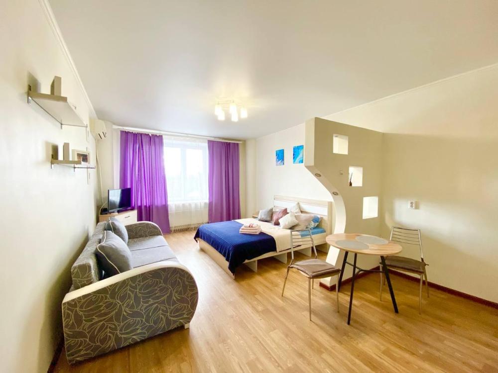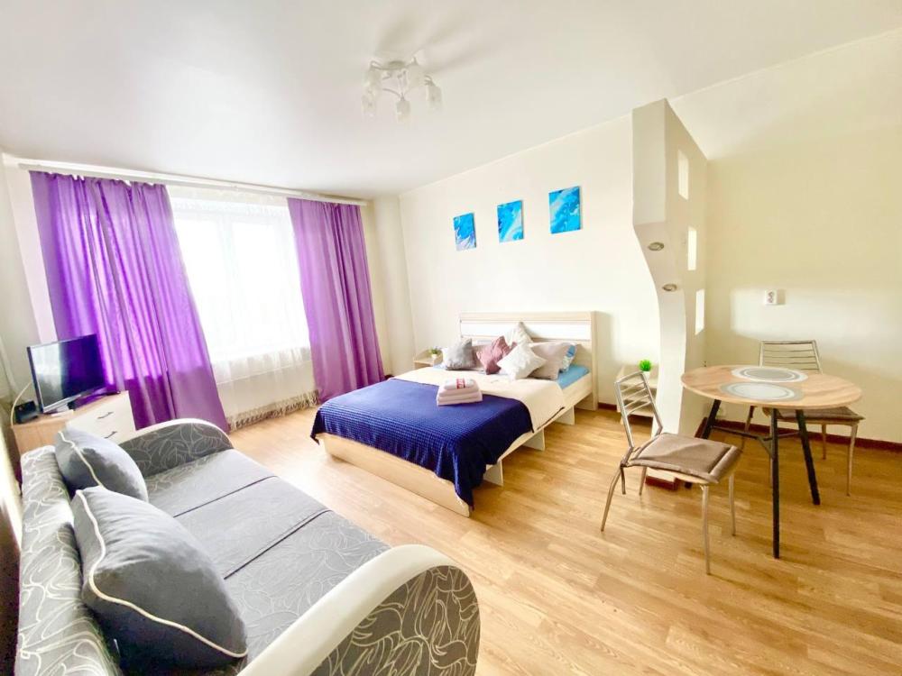 Уютная студия с дизайнерским ремонтом и джакузи. Подойдёт как для отдыха, так и для гостей приехавших в командировку. В квартире имеется: Средства личной гигиены ( шампунь, гель для душа, мыло, т.бумага), фен (по запросу). Посуда, кухонные приборы и принадлежности для приготовления пищи по своему вкусу. Гладильная доска, сушилка для белья, wi-fi интернет, телевиденье.