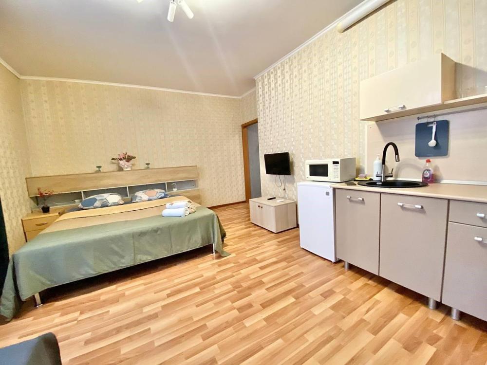 Уютные апартаменты для комфортного размещения гостей. В квартире есть всё необходимое для комфортного проживания: предусмотрены комфортабельные спальные места, вся необходимая мебель и техника, оборудованная кухонная зона.