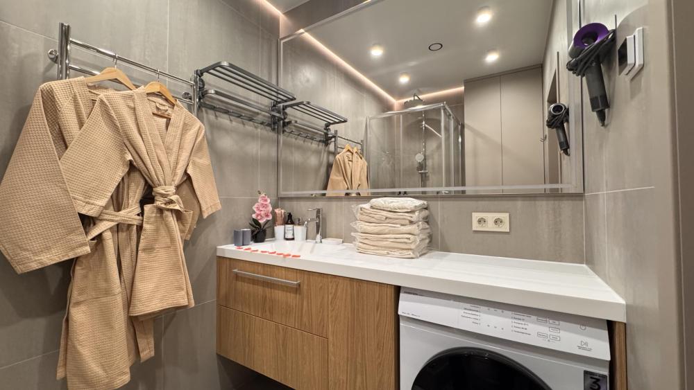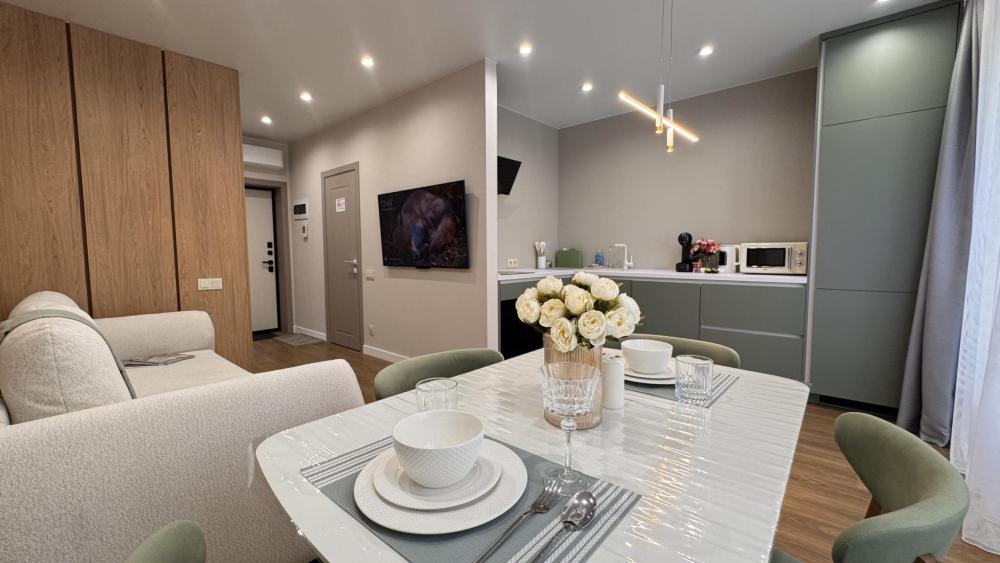 Наслаждайтесь настоящим комфортом в самом сердце Тюмени. Авторский квартал "Машаров" представляет собой идеальное сочетание комфорта и престижа, расположенный в одной из наиболее перспективных локаций города. Он занимает привилегированное место вдоль главной улицы и между двумя центральными площадями, обеспечивая легкий доступ ко всем ключевым точкам города. - Потрясающий панорамный вид на город; - Современный район - более 30 баров, кафе, ресторанов в шаговой доступности; - Кровать с ортопедическим матрасом 160х200; - Полноценная кухня; Вас ждут 3 уютных спальных места формата 2+1 для комфортного отдыха. Насладитесь свежестью и чистотой в нашей квартире, где для каждого гостя предусмотрены по 2 полотенца и идеально чистое постельное белье на спальное место. ? Приветственный бонус: чашечка ароматного чая на первый день. ? В кухне вы найдете всю современную бытовую технику: СВЧ-печь, посудомоечную машину, плиту, холодильник, электрочайник, а также посуду и кухонные принадлежности. ? Наши апартаменты оснащены всем необходимым для комфортного пребывания: утюг, гладильная доска, стиральная машина, кондиционер, сушилка для белья, фен. И, конечно же, бесплатный Wi-Fi и телевизор 55 дюймов со Smart TV для вашего удобства. ? Выбирайте нашу квартиру с удобной транспортной развязкой и близостью ко всей городской инфраструктуре: - Ресторан 'Vestekle' прямо в доме; - Ресторан Шульц, ресторан бар Tate izakaya , французский ресторан Cremant прямо в доме; - Торговый центр 'Калинка', 'ЦУМ', 'Гудвин', 'Магеллан'; - Сквер 'Николая Машарова'; - Большой Драматический театр; - Набережная реки Туры в 10 минутах; - ЖД Вокзал в 10 мин езды; - Спорткомплекс СТРОЙМАШ; - Спортивный комплекс ПРИБОЙ; - Цветной бульвар, Цирк, Центральная площадь; - Арбитражный суд Западно-Сибирского округа; - Музеи, театр кукол, филармония, дворец культуры Нефтяник ; - Музей изобразительных искусств; - Медицинский центр 'МАЛЫШ'; - Транспортная инфраструктура обеспечит быструю доступность ко всем уголкам города и его главным достопримечательностями; ? Мы предоставляем отчетные документы для организаций и командировочных. Заключаем договоры как на разовые, так и на постоянные услуги, и принимаем оплату любым удобным для вас способом. ? Действует страховой депозит в размере 3000 рублей, который возвращается при выезде. ⚠️ Проживание возможно для лиц не моложе 25 лет! Расчетный час : ? Заезд с 14:00 - 24:00, ? Выезд до 12:00 Дополнительные услуги: Тапочки, халат, зубной набор, детская кровать. При бронировании узнавайте у менеджера. Также предоставляется кофе в капсулах в ассортименте за дополнительную плату. Стоимость и наличие кофемашины необходимо уточнять у сотрудников объекта размещения. В стоимость проживания входит размещение двух гостей на одном совместном спальном месте. Размещение двух гостей на отдельных спальных местах возможно за дополнительную плату. Суточные бронирования осуществляются при условии 100% предоплаты, внесения залогового платежа и подписания договора. После внесения частичной предоплаты на сайте менеджер свяжется с вами для дальнейшего оформления. Мы ждем вас, чтобы сделать ваше пребывание в Тюмени незабываемым! Забронируйте наши апартаменты прямо сейчас! ❤️
