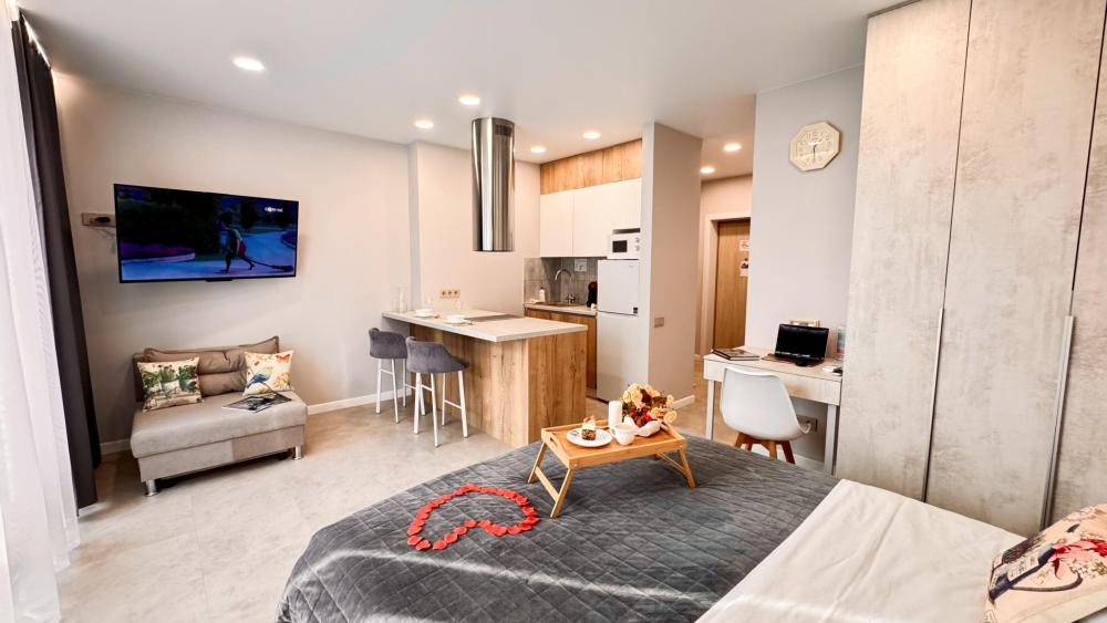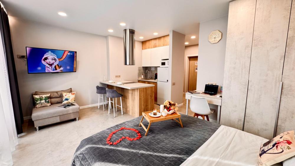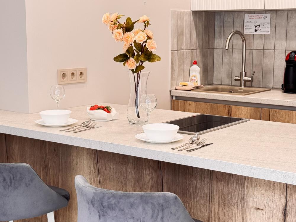 Наслаждайтесь настоящим комфортом в самом сердце Тюмени. Авторский квартал "Машаров" представляет собой идеальное сочетание комфорта и престижа, расположенный в одной из наиболее перспективных локаций города. Он занимает привилегированное место вдоль главной улицы и между двумя центральными площадями, обеспечивая легкий доступ ко всем ключевым точкам города. - Потрясающий панорамный вид на город; - Современный район - более 30 баров, кафе, ресторанов в шаговой доступности; - Кровать с ортопедическим матрасом 160х200; - Полноценная кухня; Вас ждут 4 (2+2) уютных спальных места для комфортного отдыха. Насладитесь свежестью и чистотой в нашей квартире, где для каждого гостя предусмотрены по 2 полотенца и Идеально чистое постельное белье. Приветственный бонус: чашечка ароматного чая на первый день. В кухне вы найдете всю современную бытовую технику: СВЧ-печь, плиту, холодильник, электрочайник, а также посуду и кухонные принадлежности. Наши апартаменты оснащены всем необходимым для комфортного пребывания: утюг, гладильная доска, стиральная машина, кондиционер, сушилка для белья, фен. И, конечно же, бесплатный Wi-Fi и два телевизора 43 дюймов со Smart TV для вашего удобства. Выбирайте нашу квартиру с удобной транспортной развязкой и близостью ко всей городской инфраструктуре: - Ресторан 'Vestekle' прямо в доме; - Ресторан Шульц, ресторан бар Tate izakaya , французский ресторан Cremant прямо в доме; - Торговый центр 'Калинка', 'ЦУМ', 'Гудвин', 'Магеллан'; - Сквер 'Николая Машарова'; - Большой Драматический театр; - Набережная реки Туры в 10 минутах; - ЖД Вокзал в 10 мин езды; - Спорткомплекс СТРОЙМАШ; - Спортивный комплекс ПРИБОЙ; - Цветной бульвар, Цирк, Центральная площадь; - Арбитражный суд Западно-Сибирского округа; - Музеи, театр кукол, филармония, дворец культуры Нефтяник ; - Музей изобразительных искусств; - Медицинский центр 'МАЛЫШ'; - Транспортная инфраструктура обеспечит быструю доступность ко всем уголкам города и его главным достопримечательностями; Мы предоставляем отчетные документы для организаций и командировочных. Заключаем договоры как на разовые, так и на постоянные услуги, и принимаем оплату любым удобным для вас способом. Действует страховой депозит в размере 3000 рублей, который возвращается при выезде. Проживание возможно для лиц не моложе 25 лет! Расчетный час : Заезд с 14:00 - 24:00, Выезд до 12:00 Дополнительные услуги: Тапочки, халат, зубной набор, детская кровать. При бронировании узнавайте у менеджера. Также предоставляется кофе в капсулах в ассортименте за дополнительную плату. Стоимость и наличие кофемашины необходимо уточнять у сотрудников объекта размещения. В стоимость проживания входит размещение двух гостей на одном совместном спальном месте. Размещение двух гостей на отдельных спальных местах возможно за дополнительную плату. Суточные бронирования осуществляются при условии 100% предоплаты, внесения залогового платежа и подписания договора. После внесения частичной предоплаты на сайте менеджер свяжется с вами для дальнейшего оформления. Мы ждем вас, чтобы сделать ваше пребывание в Тюмени незабываемым! Забронируйте наши апартаменты прямо сейчас!