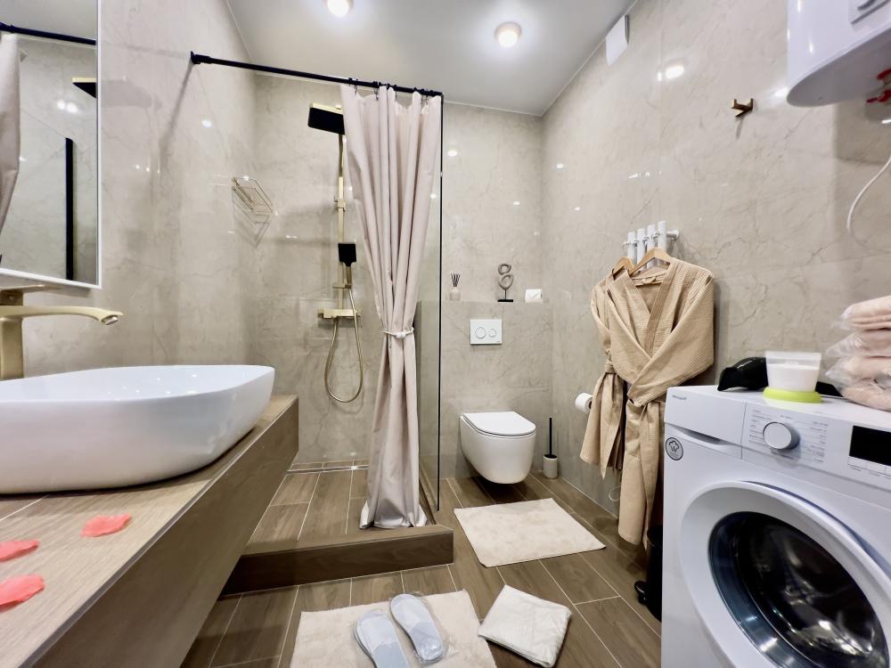 Наслаждайтесь настоящим комфортом в самом сердце Тюмени. Авторский квартал "Машаров" представляет собой идеальное сочетание комфорта и престижа, расположенный в одной из наиболее перспективных локаций города. Он занимает привилегированное место вдоль главной улицы и между двумя центральными площадями, обеспечивая легкий доступ ко всем ключевым точкам города. - Потрясающий панорамный вид на город; - Современный район - более 30 баров, кафе, ресторанов в шаговой доступности; - Кровать с ортопедическим матрасом 180х200; - Полноценная кухня; Вас ждут 3 (2+1) уютных спальных места для комфортного отдыха. Насладитесь свежестью и чистотой в нашей квартире, где для каждого гостя предусмотрены по 2 полотенца и идеально чистое постельное белье на спальное место. Приветственный бонус: чашечка ароматного чая на первый день. В кухне вы найдете всю современную бытовую технику: СВЧ-печь, плиту, холодильник, электрочайник, посудомоечная машина, а также посуду и кухонные принадлежности. Наши апартаменты оснащены всем необходимым для комфортного пребывания: утюг, гладильная доска, стиральная машина, кондиционер, сушилка для белья, фен. И, конечно же, бесплатный Wi-Fi и телевизор 43 дюймов со Smart TV для вашего удобства. Выбирайте нашу квартиру с удобной транспортной развязкой и близостью ко всей городской инфраструктуре: - Ресторан 'Vestekle' прямо в доме; - Ресторан Шульц, ресторан бар Tate izakaya , французский ресторан Cremant прямо в доме; - Торговый центр 'Калинка', 'ЦУМ', 'Гудвин', 'Магеллан'; - Сквер 'Николая Машарова'; - Большой Драматический театр; - Набережная реки Туры в 10 минутах; - ЖД Вокзал в 10 мин езды; - Спорткомплекс СТРОЙМАШ; - Спортивный комплекс ПРИБОЙ; - Цветной бульвар, Цирк, Центральная площадь; - Арбитражный суд Западно-Сибирского округа; - Музеи, театр кукол, филармония, дворец культуры Нефтяник ; - Музей изобразительных искусств; - Медицинский центр 'МАЛЫШ'; - Транспортная инфраструктура обеспечит быструю доступность ко всем уголкам города и его главным достопримечательностями; Мы предоставляем отчетные документы для организаций и командировочных. Заключаем договоры как на разовые, так и на постоянные услуги, и принимаем оплату любым удобным для вас способом. Действует страховой депозит в размере 3000 рублей, который возвращается при выезде. Проживание возможно для лиц не моложе 25 лет! Расчетный час : Заезд с 14:00 - 24:00, Выезд до 12:00 Дополнительные услуги: Тапочки, халат, зубной набор, детская кровать. При бронировании узнавайте у менеджера. Также предоставляется кофе в капсулах в ассортименте за дополнительную плату. Стоимость и наличие кофемашины необходимо уточнять у сотрудников объекта размещения. В стоимость проживания входит размещение двух гостей на одном совместном спальном месте. Размещение двух гостей на отдельных спальных местах возможно за дополнительную плату. Суточные бронирования осуществляются при условии 100% предоплаты, внесения залогового платежа и подписания договора. После внесения частичной предоплаты на сайте менеджер свяжется с вами для дальнейшего оформления. Мы ждем вас, чтобы сделать ваше пребывание в Тюмени незабываемым! Забронируйте наши апартаменты прямо сейчас!