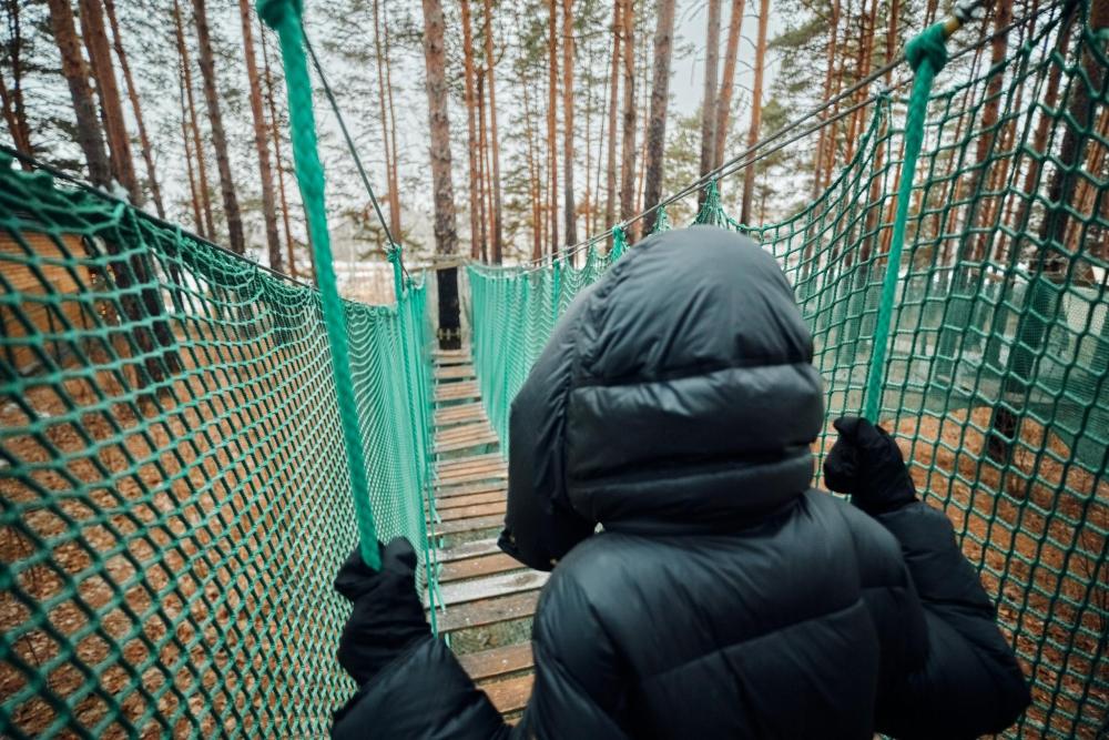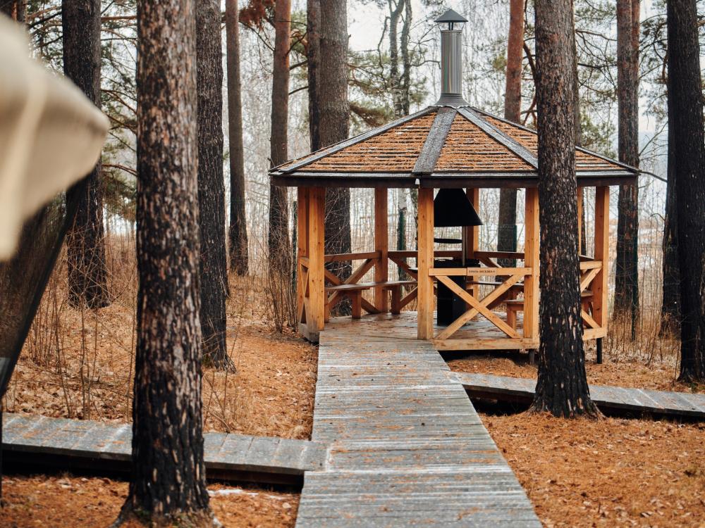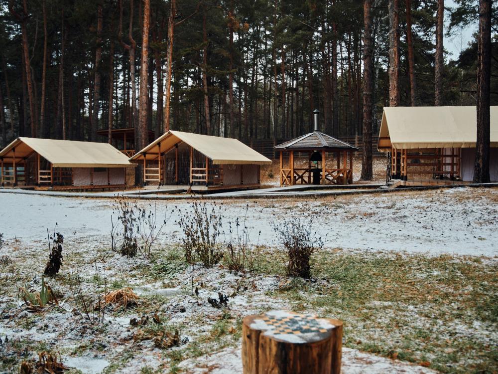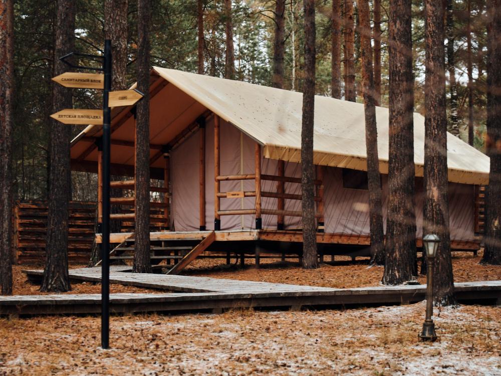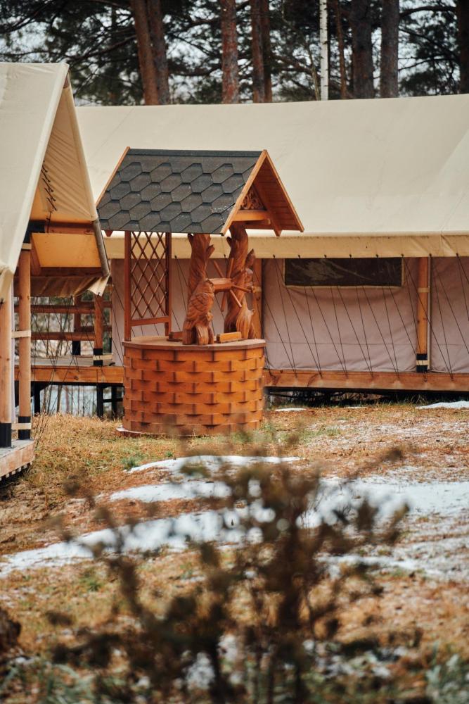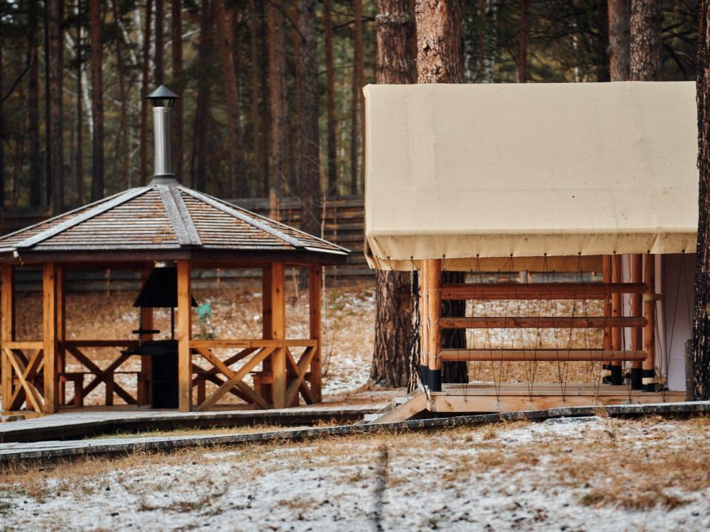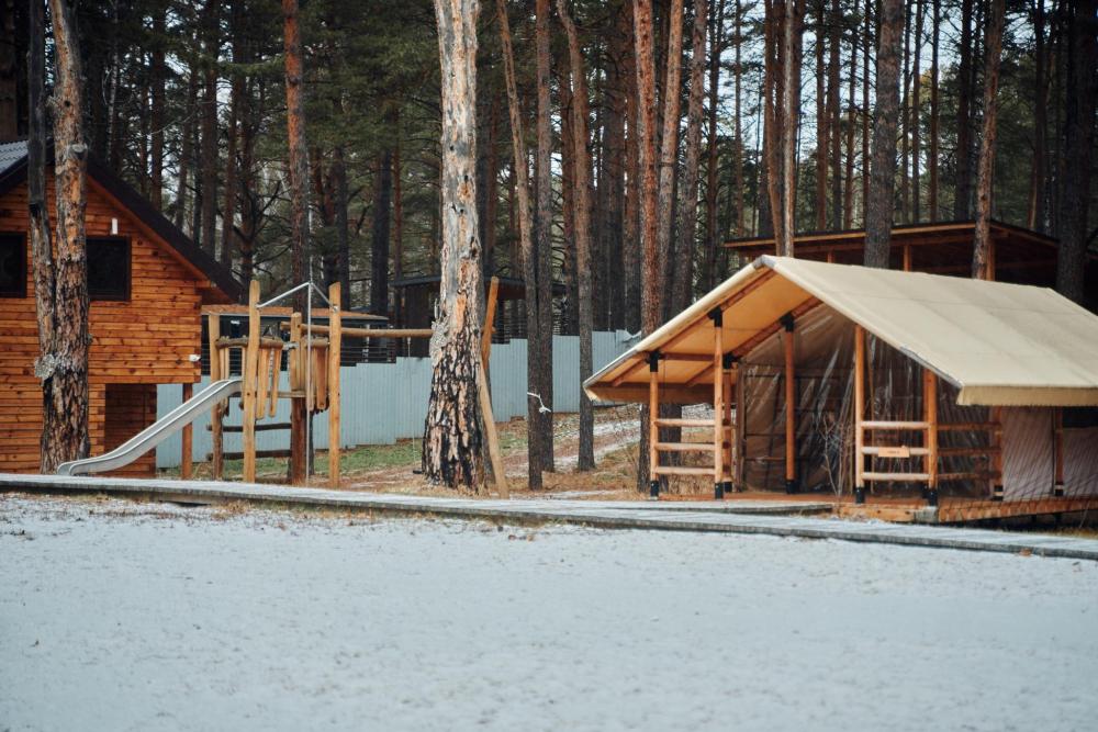 Тент-хаус для 4 гостей На суточное проживание до 4 гостей, дети до 3 лет без дополнительного спального места. На дневное пребывание дополнительно до 2 гостей (оплачивается согласно прейскуранту цен) *Оснащение тент-хауса: - Две односпальные кровати; - Диван; - Постельное белье изо льна и хлопка, полотенца; - Обеденная зона на террасе. *Кухонная зона оснащена: - Холодильник в формате мини-бара - Чайная станция с тремя видами чая; - Тарелки и чайные пары; - Столовые приборы и разделочная доска. *Гриль-зона в свободном доступе, оснащена шампурами и гриль-решёткой. (У администратора можно приобрести уголь и розжиг) *Санитарный блок с туалетом и горячим душем располагается на территории *Развлечения на территории комплекса включают в себя разнообразные активности, такие как веревочный парк, детская площадка KOMPAN, снегоболотоход , настольные и активные игры (бадминтон, фрисби, мульидиск, волейбольный и футбольные мячи, скакалки). Кроме того, всего в 1 минуте ходьбы расположено живописное озеро Нижнее Кривое