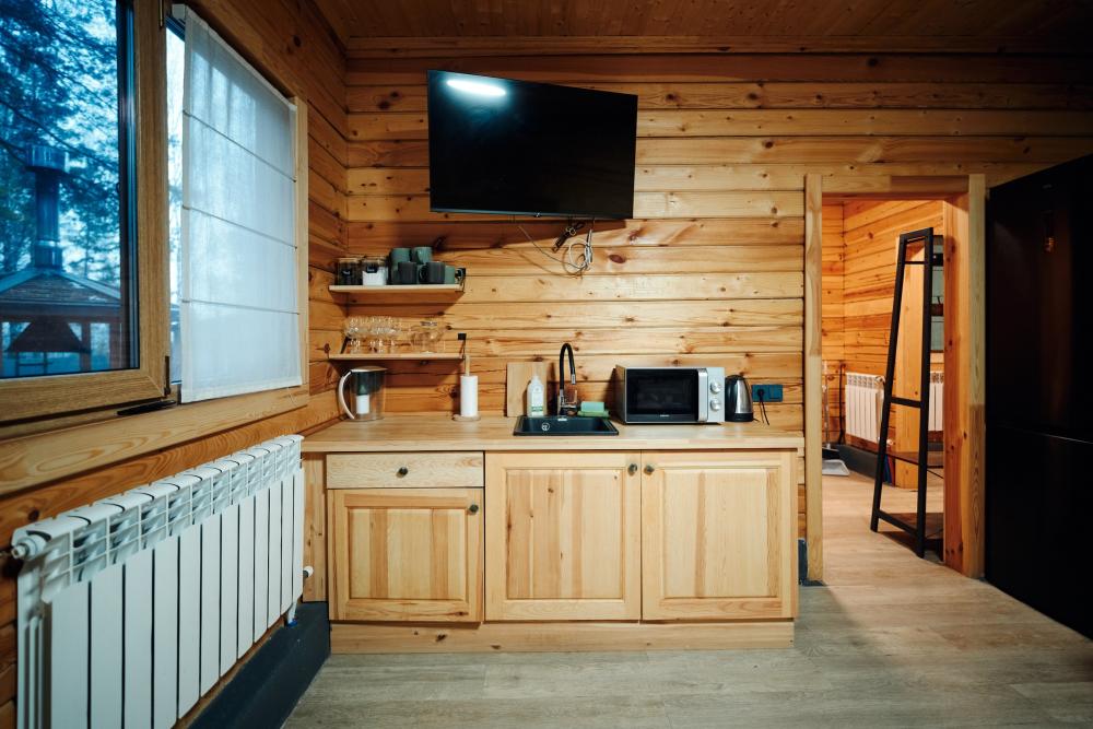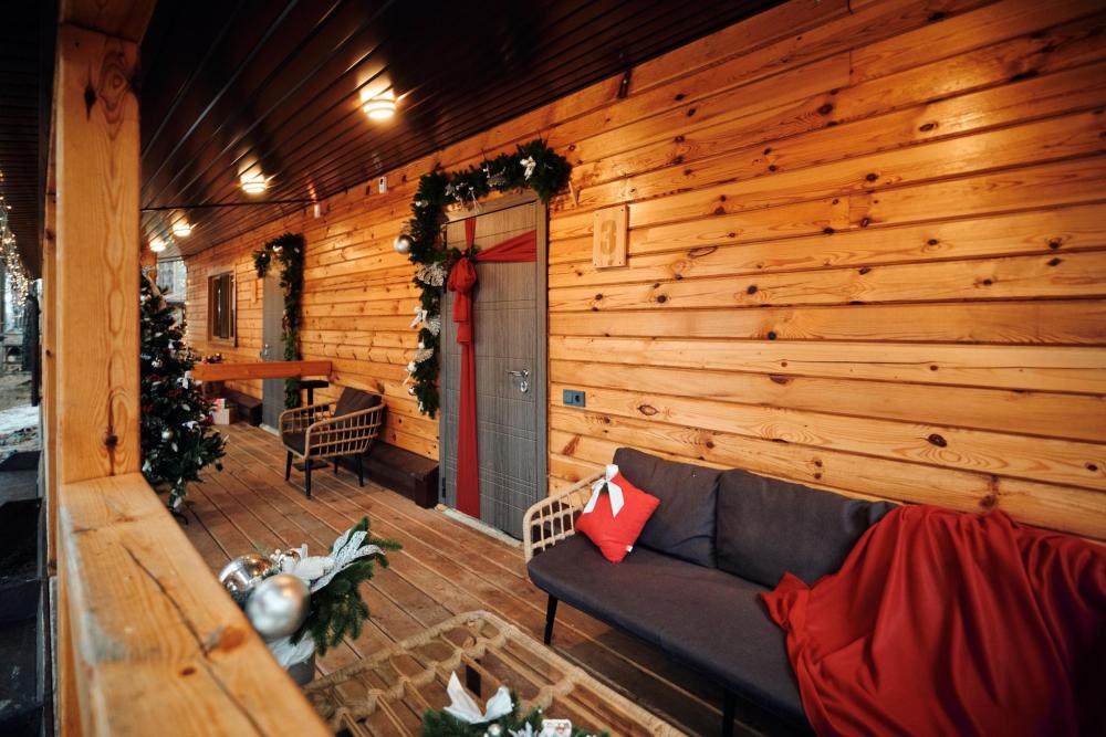 Вместимость: Дом рассчитан на 5 гостей, идеально подходит для семьи с детьми (дети до 7 лет без отдельного спального места). Комфорт: Две спальни, кухня-гостиная, зона отдыха и просторная терраса обеспечивают достаточно пространства для отдыха и развлечений. Удобства: Кухня полностью оборудована всем необходимым для приготовления пищи. Спальни имеют комфортабельные большие кровати с натуральным постельным бельем из льна и хлопка, телевизоры и консоли. Туалетная и душевая комнаты оснащены всем необходимым, включая индивидуальные косметические наборы и полотенца. Терраса с мебелью и шезлонгами позволяет наслаждаться свежим воздухом и природой. Баня: Наличие русской бани на дровах – отличный способ расслабиться и отдохнуть.