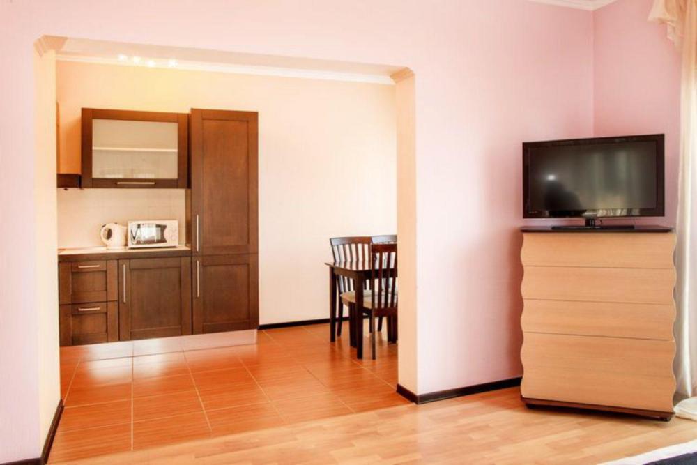 Номер с современным ремонтом, приятным интерьером. В гостиной: комфортный двуспальный диван, журнальный столик, LCD телевизор, кондиционер. Кухня со всеми принадлежностями - кухонный гарнитур, холодильник, электрический чайник, микроволновая печь, электрическая плита, духовой шкаф, вся необходимая посуда. В спальне: двуспальная кровать, шкаф, прикроватные тумбочки. В ванной комнате вся необходимая сантехника, стиральная машинка-автомат.