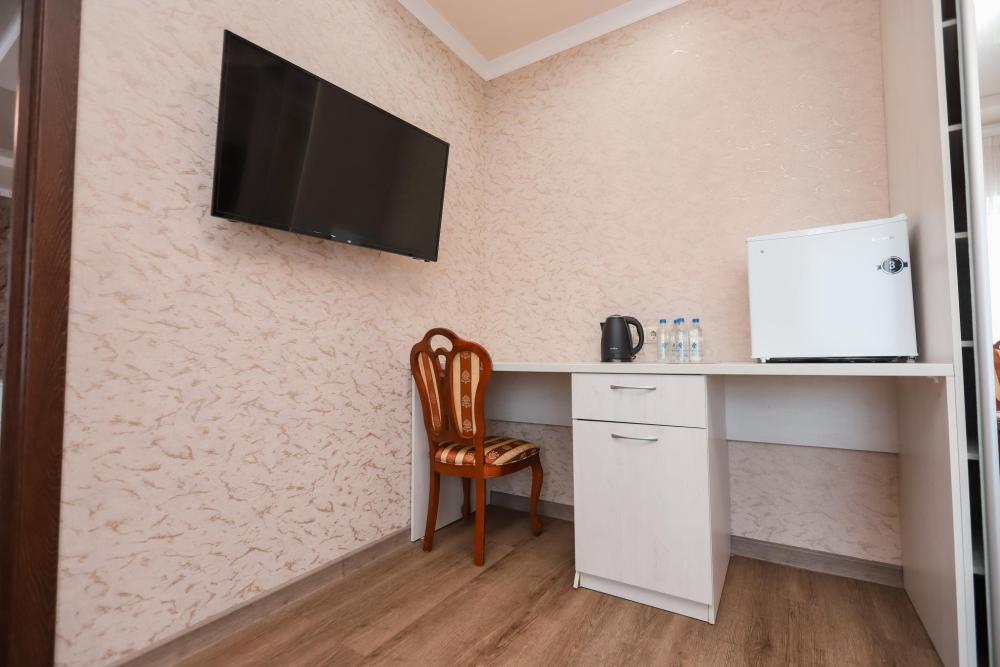 Уютный двухместный номер с удобствами. Предусмотрено всё необходимое для комфортного проживания: холодильник, телевизор, электрочайник, бесплатный wi-fi, туалет и душ.