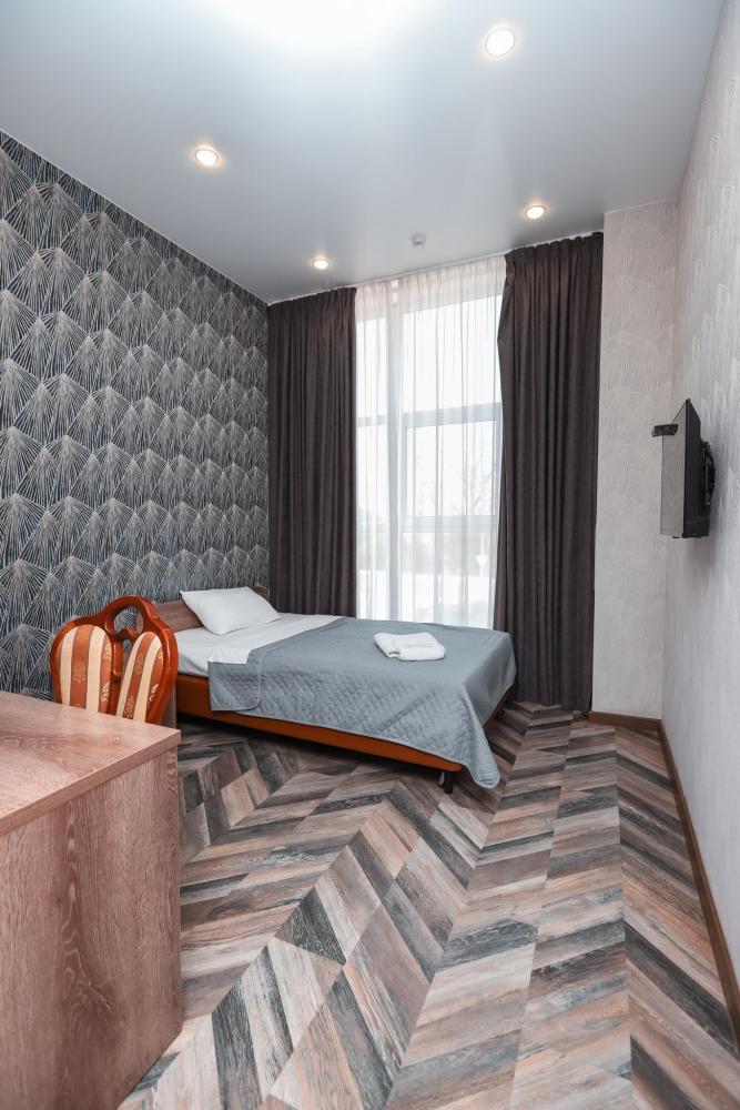 Уютный одноместный номер с удобствами. Предусмотрено всё необходимое для комфортного проживания: холодильник, телевизор, бесплатный wi-fi, туалет и душ.