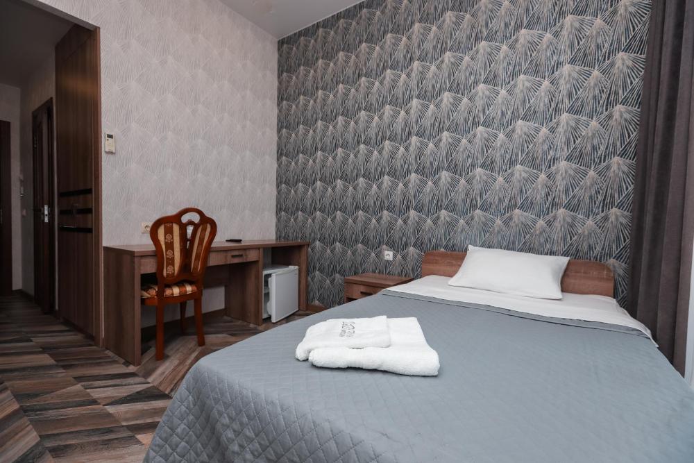 Уютный двухместный номер со всеми удобствами для проживания с двуспальной кроватью. В номере есть холодильник, телевизор, электрочайник, бесплатный высокоскоростной wi-fi, постельные и туалетные принадлежности.