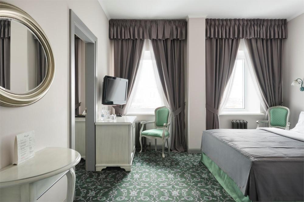 1 комната, кровать queen size 180x200 с ортопедическим матрасом, плазменная TV-панель, спутниковое телевидение, интернет W-Fi, телефон, индивидуальный сейф, набор для приготовления чая и кофе, бутилированная вода. Ванная комната оснащена стандартной ванной, феном, подогреваемым полом, сушилкой, полотенцами, халат, тапочки, набором ванных и косметических принадлежностей,бритвенный набор-по запросу. Салфетка для обуви, лопатка для обуви. Швейный набор, ватные палочки, расческа в тумбочке под телефоном.
