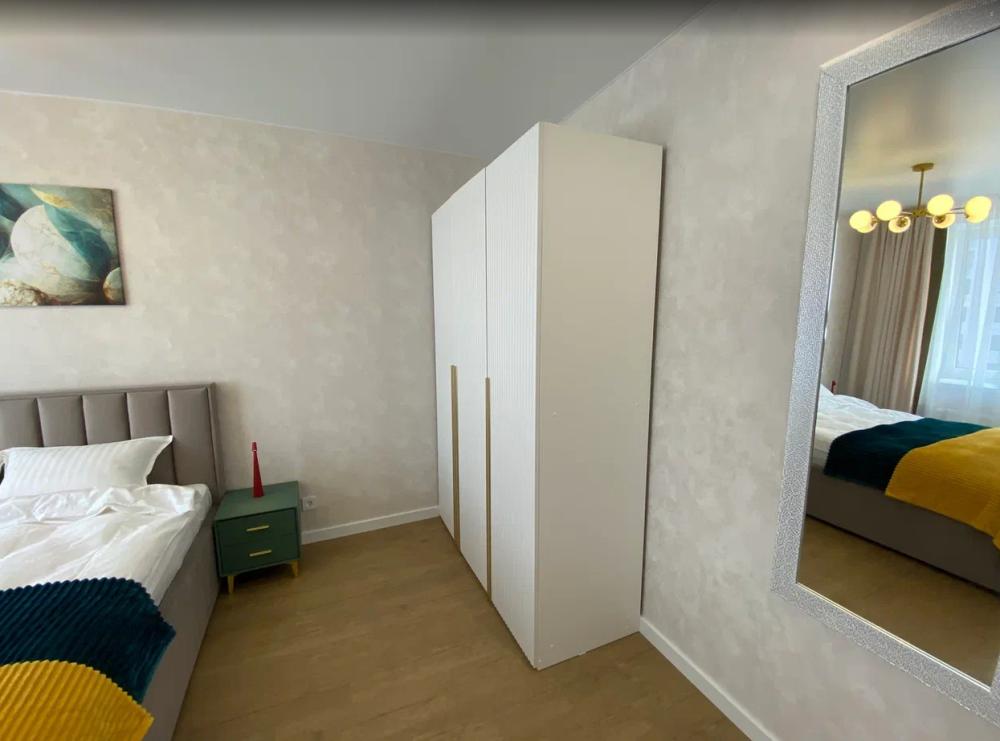 Квартира на 7 этаже, окна во двор. В квартире: кровать 180×200 и двуспальный диван — удобно для семьи или пары. Полностью укомплектованная кухня - гостиная и изолированная спальня.