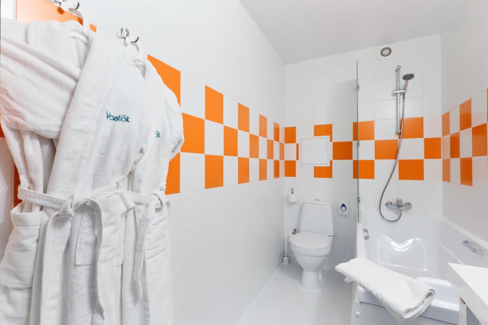 Комфортный номер, который подойдет, как для одного, так и для двоих Гостей. Номер с большой двуспальная кроватью, системой хранения одежды, рабочей зоной с телевизором. Отдельная ванная комната со всеми необходимыми принадлежностями.