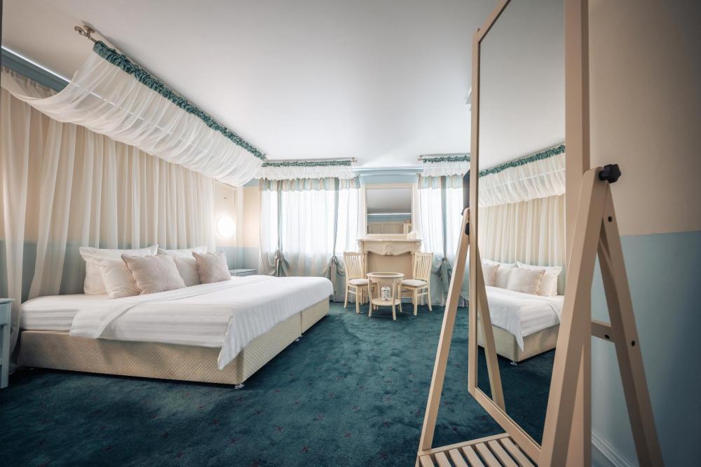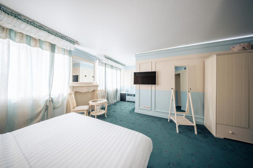 Просторный однокомнатный номер для размещения не более двух Гостей. Номер с большой двуспальной кроватью, шкафом для одежды, комфортной зоной с телевизором. Отдельная ванная комната со всеми необходимыми принадлежностями. По запросу отель предлагает дополнительные услуги, такие как романтические пакеты: цветы, шампанское, а также специальные ужины, что позволяет сделать Ваше пребывание еще более запоминающимся.