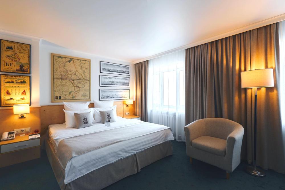 Уютный номер, позволяющий совершить путешествие во времени, узнать о людях, в жизни которых, так или иначе «оставила след» Тюмень. Номер с двуспальной кроватью, системой хранения одежды, рабочей зоной с телевизором. Отдельная ванная комната со всеми необходимыми принадлежностями. Номера расположены на 5 этаже.