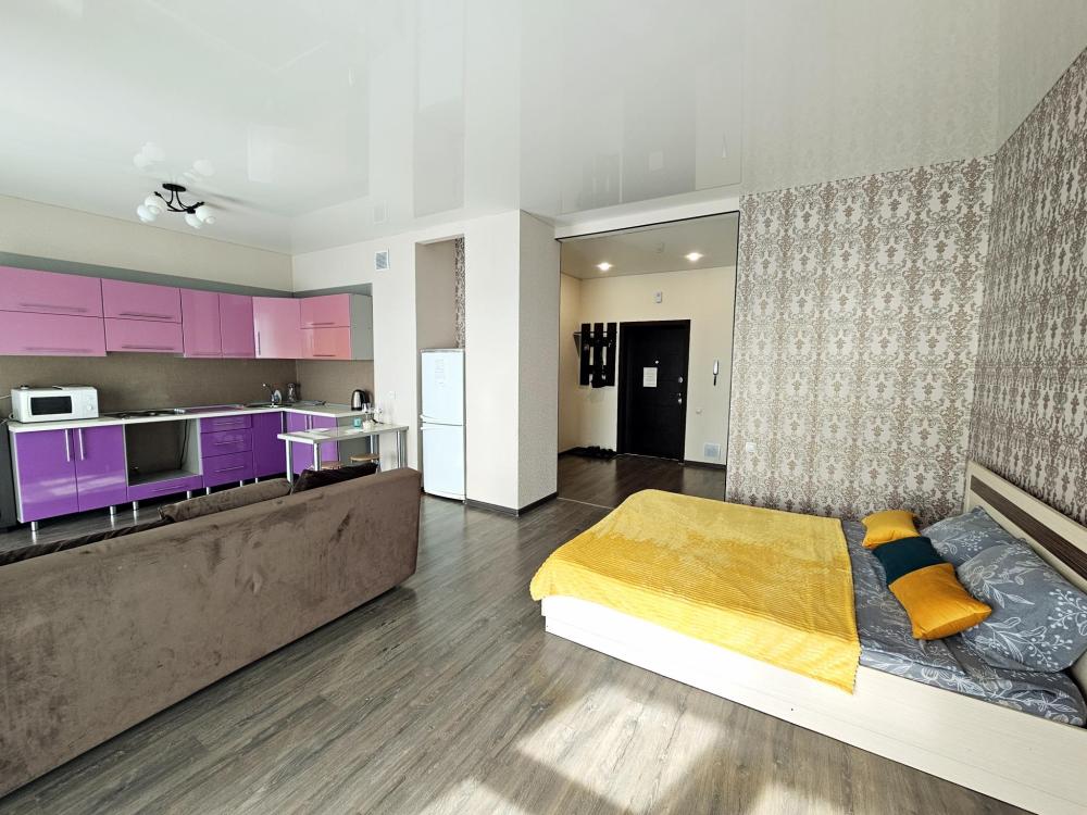 Уютные апартаменты в Тюмени. Рядом развитая инфраструктура: магазины, аптека, остановки общественного транспорта, удобная транспортная развязка. Уютные апартаменты, оборудованные всем необходимым для комфортного проживания. В апартаментах: двуспальная кровать,...