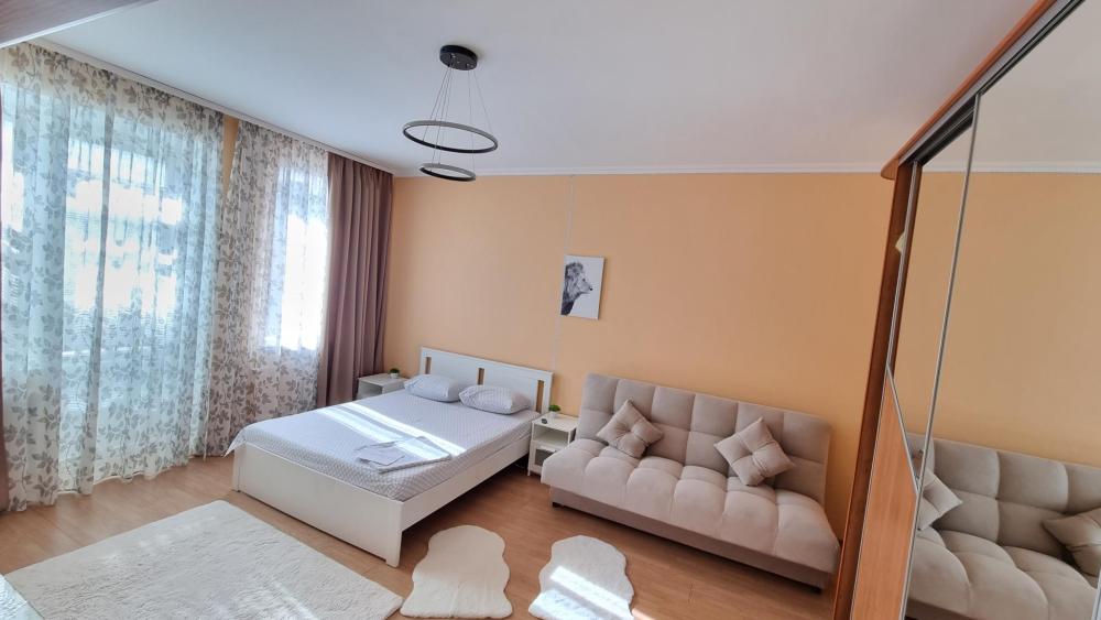 Новые уютные апартаменты комфорт класса в центре города. Оснащение: шкаф-купе, комфортная двуспальная кровать, диван-кровать, Wi-Fi, ТВ (с функцией SMART TV), СВЧ-печь, варочная панель, кофемашина "DeLonghi", стиральная машина, утюг и гладильная доска; Косметические принадлежности; - В...