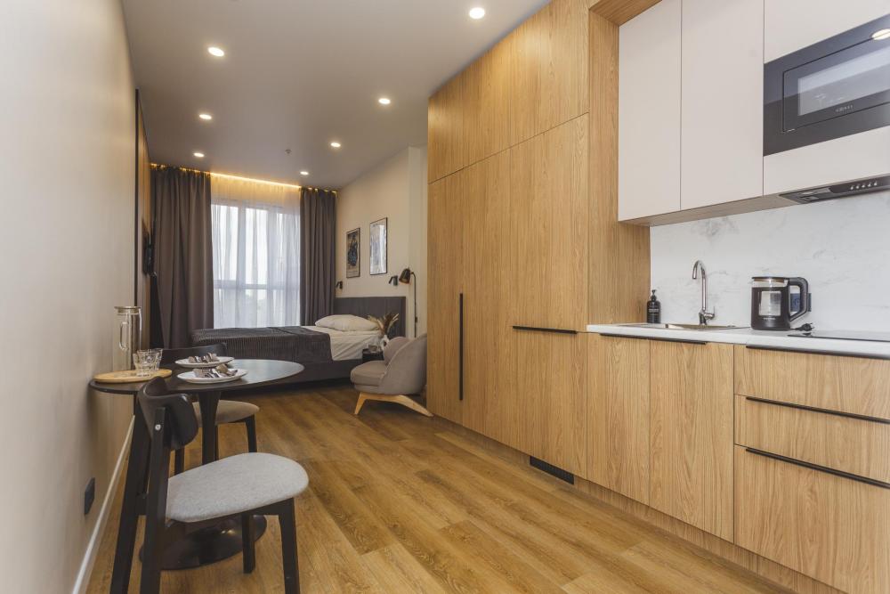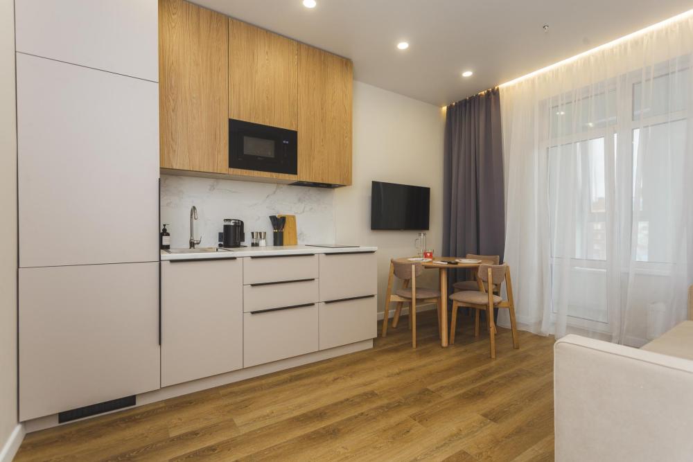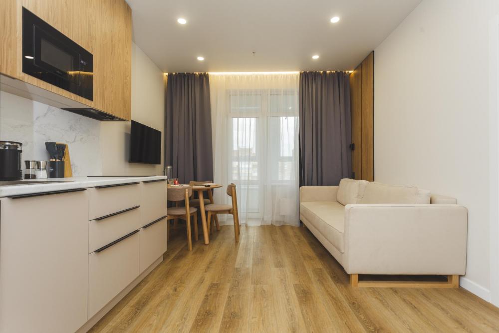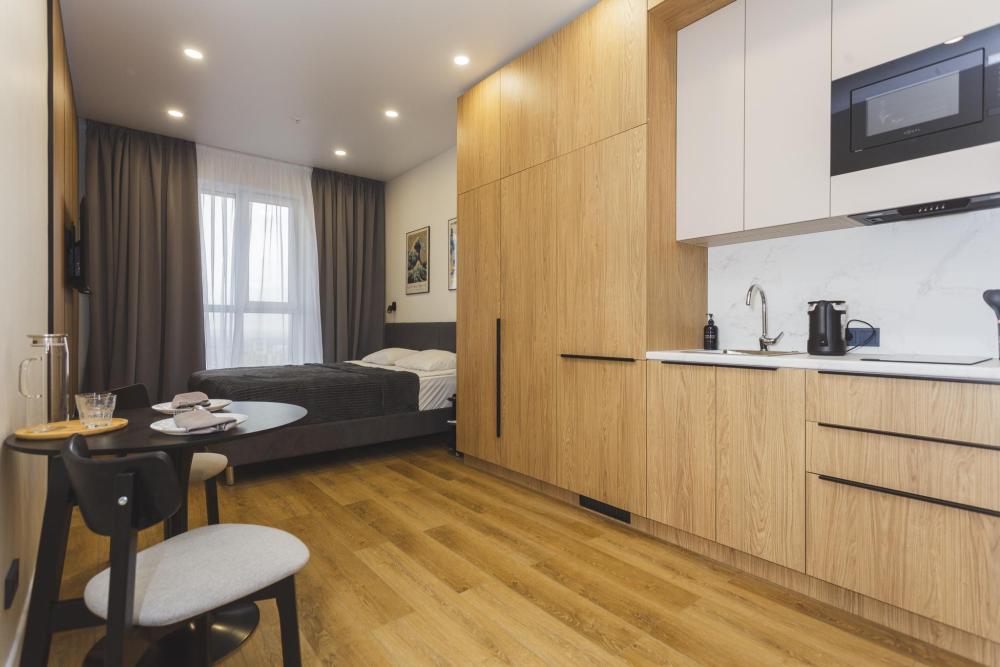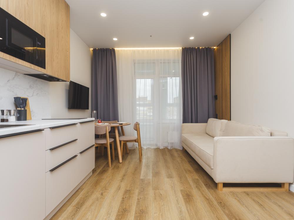 Добро пожаловать в наш современный апарт-отель, где каждый элемент создан для вашего комфорта и уюта! Мы предлагаем вам уникальные апартаменты с новым дизайнерским ремонтом, в которых есть все необходимое для комфортного проживания. Удобства: Номер вместимостью до 4 человек. Полностью оборудованная кухня с микроволновой печью, где вы сможете готовить любимые блюда. Стиральная машина для вашего удобства, чтобы вы всегда могли наслаждаться свежими вещами. Кондиционер, обеспечивающий идеальную температуру в любое время года. Удобная кровать-трансформер, которую можно легко превратить в одну большую или две отдельные кровати, в зависимости от ваших предпочтений. Дополнительно в номере имеется раскладной диван. Наши новые апартаменты идеально подходят как для краткосрочного, так и для длительного пребывания. Мы обеспечиваем возможность бесконтактного или контактного заселения, чтобы вы могли выбрать наиболее удобный для вас способ. Мы всегда готовы ответить на ваши вопросы и помочь с организацией вашего пребывания. Погрузитесь в атмосферу уюта и современного дизайна — мы ждем вас в нашем апарт-отеле!