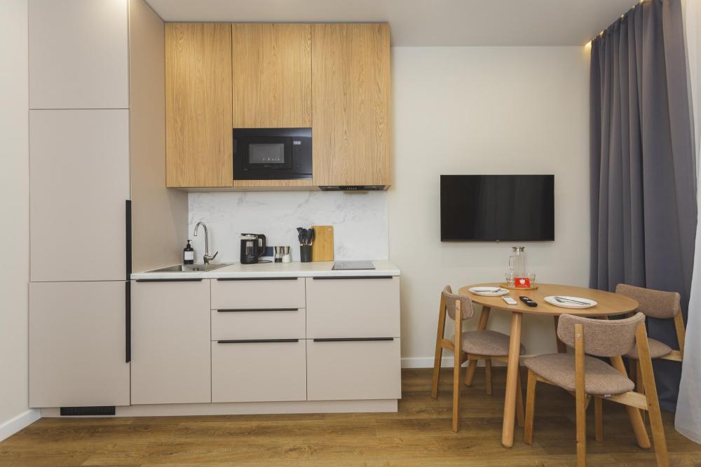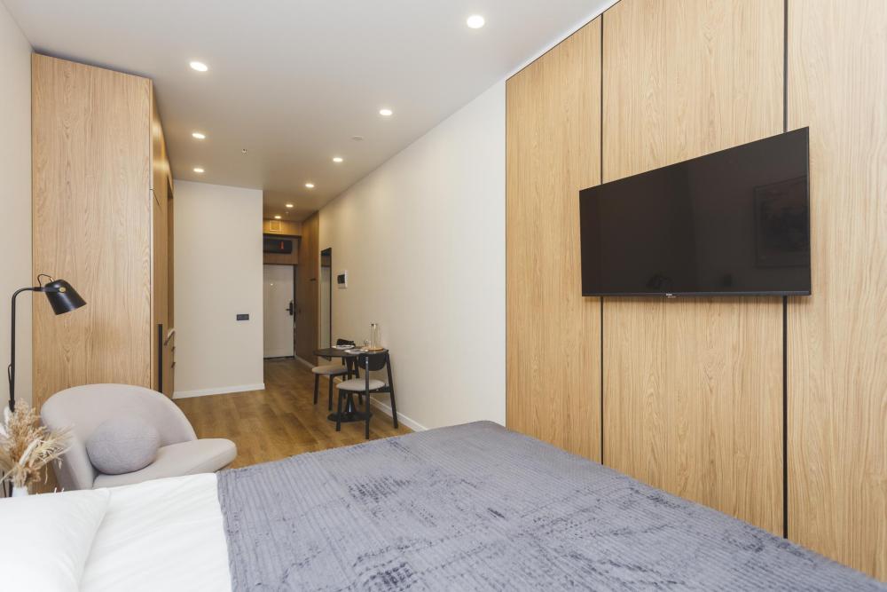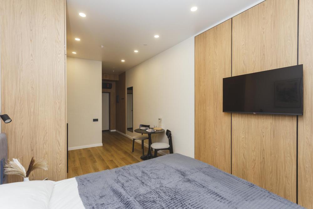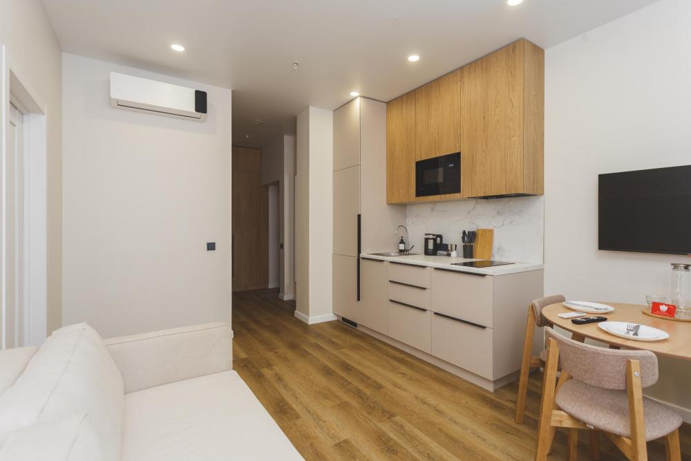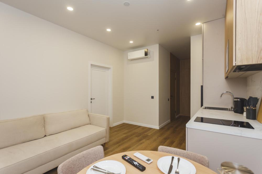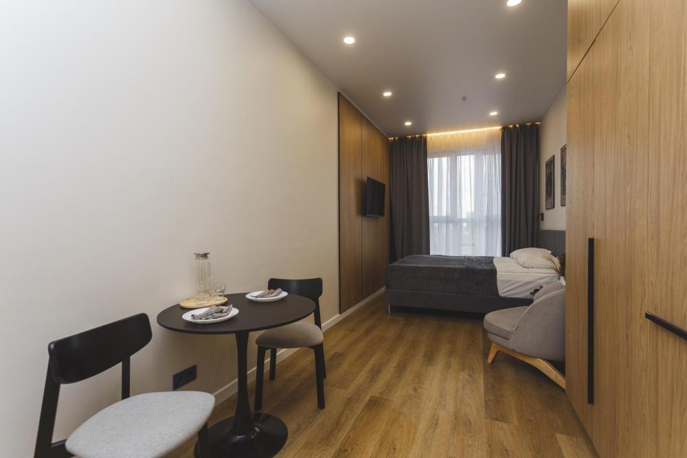 Добро пожаловать в наш современный апарт-отель, где каждый элемент создан для вашего комфорта и уюта! Мы предлагаем вам уникальные апартаменты с новым дизайнерским ремонтом, в которых есть все необходимое для комфортного проживания. Удобства: Номер вместимостью до 4 человек. Полностью оборудованная кухня с микроволновой печью, где вы сможете готовить любимые блюда. Стиральная машина для вашего удобства, чтобы вы всегда могли наслаждаться свежими вещами. Кондиционер, обеспечивающий идеальную температуру в любое время года. Удобная кровать-трансформер, которую можно легко превратить в одну большую или две отдельные кровати, в зависимости от ваших предпочтений. Дополнительно в номере имеется раскладной диван. Наши новые апартаменты идеально подходят как для краткосрочного, так и для длительного пребывания. Мы обеспечиваем возможность бесконтактного или контактного заселения, чтобы вы могли выбрать наиболее удобный для вас способ. Мы всегда готовы ответить на ваши вопросы и помочь с организацией вашего пребывания. Погрузитесь в атмосферу уюта и современного дизайна — мы ждем вас в нашем апарт-отеле!