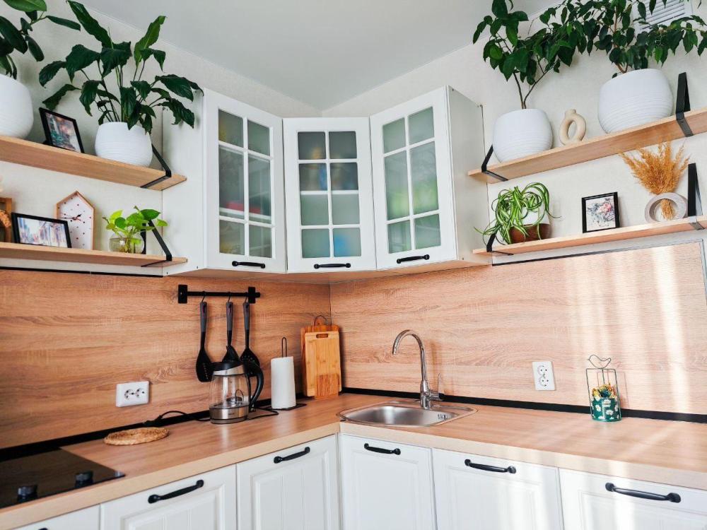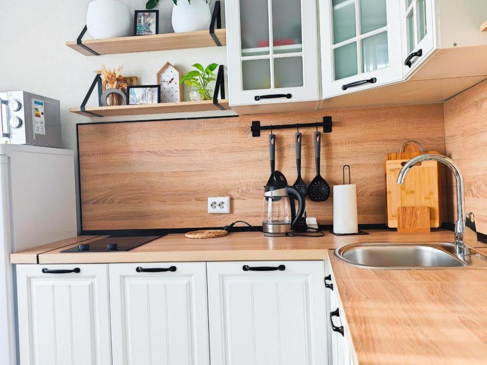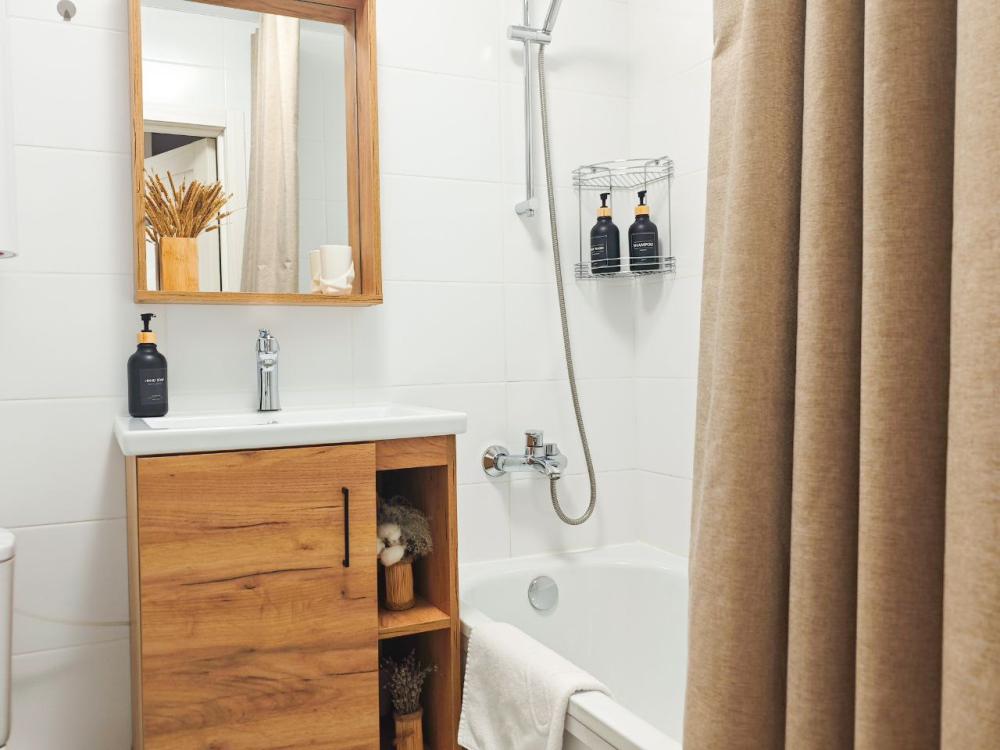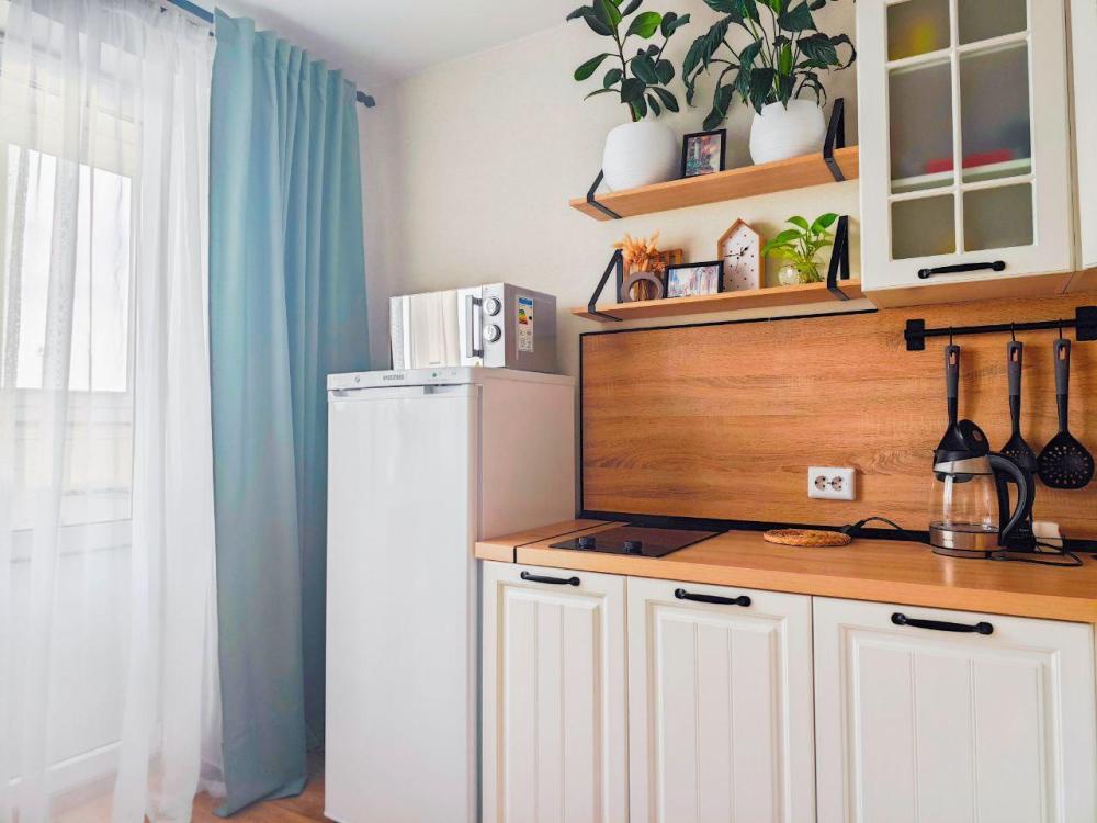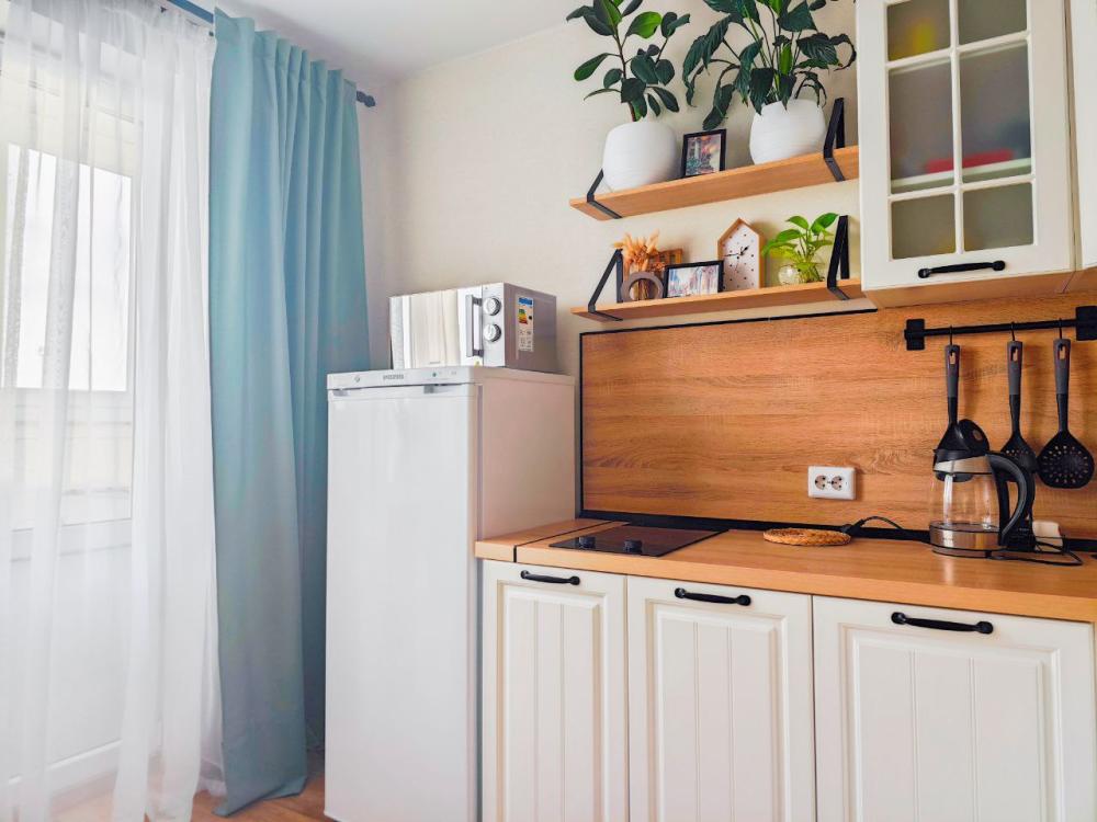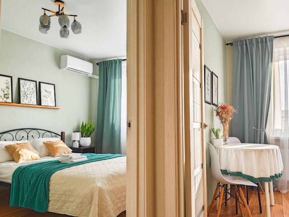 Апартаменты для 4 гостей. Спальные места: диван и двуспальная кровать. Кухня оборудована необходимой посудой и техникой. Гостям предоставляется хлопковое белоснежное бельё, мягкие белые полотенца. Окна выходят на зелёный частный сектор.