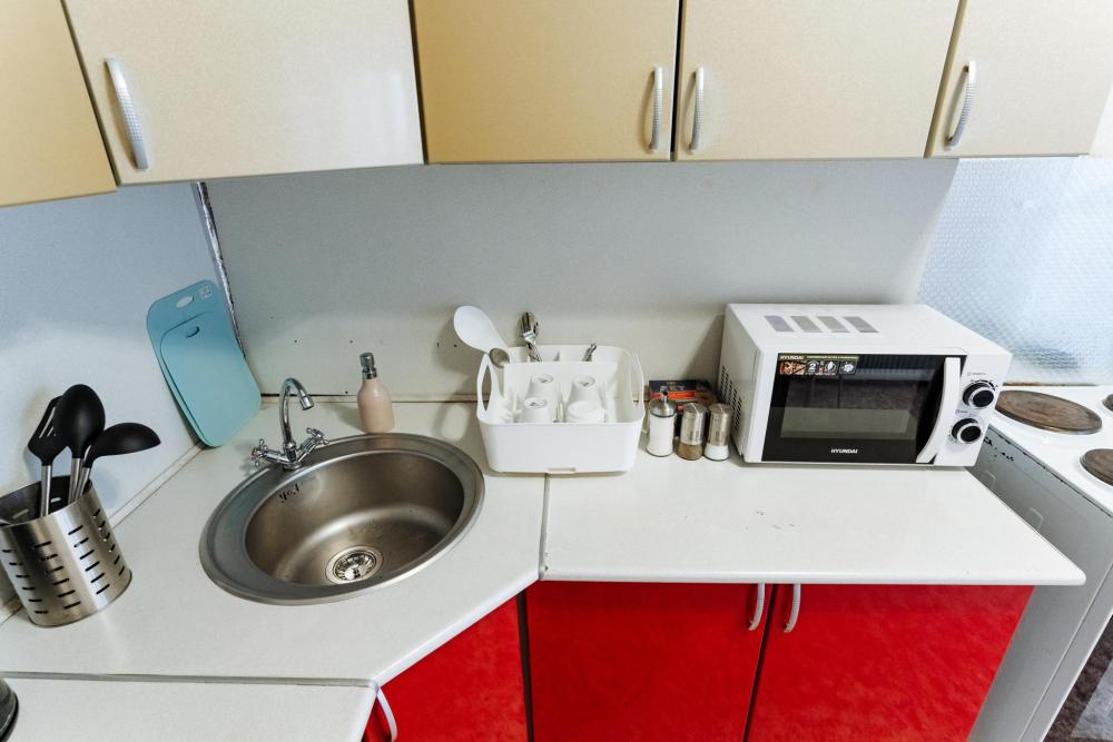 КУХОННАЯ ЗОНА: оснащена всем необходимым для приготовления еды (плита, холодильник, микроволновая печь, чайник, вся посуда)