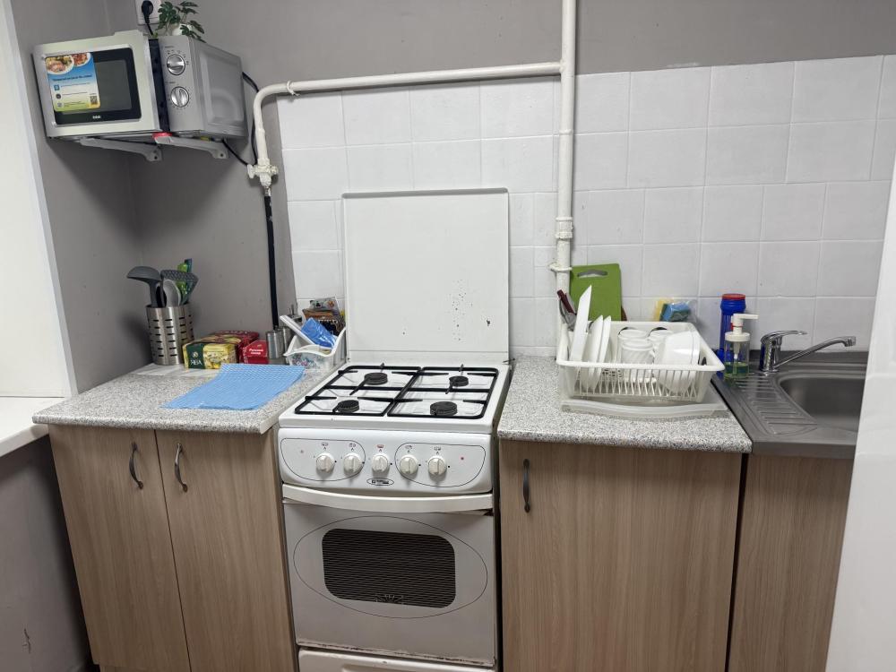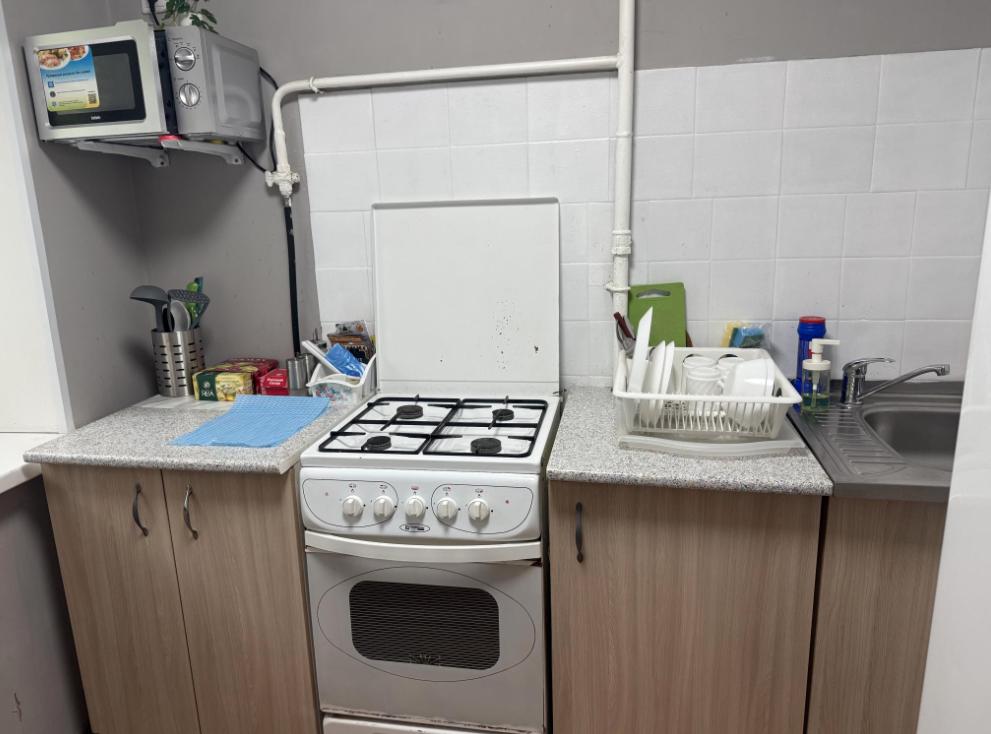 КУХОННАЯ ЗОНА: оснащена всем необходимым для приготовления еды (плита, холодильник, микроволновая печь, чайник, вся посуда)