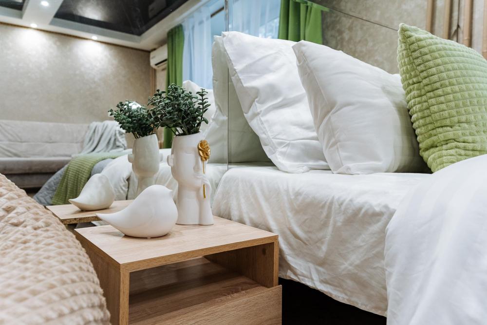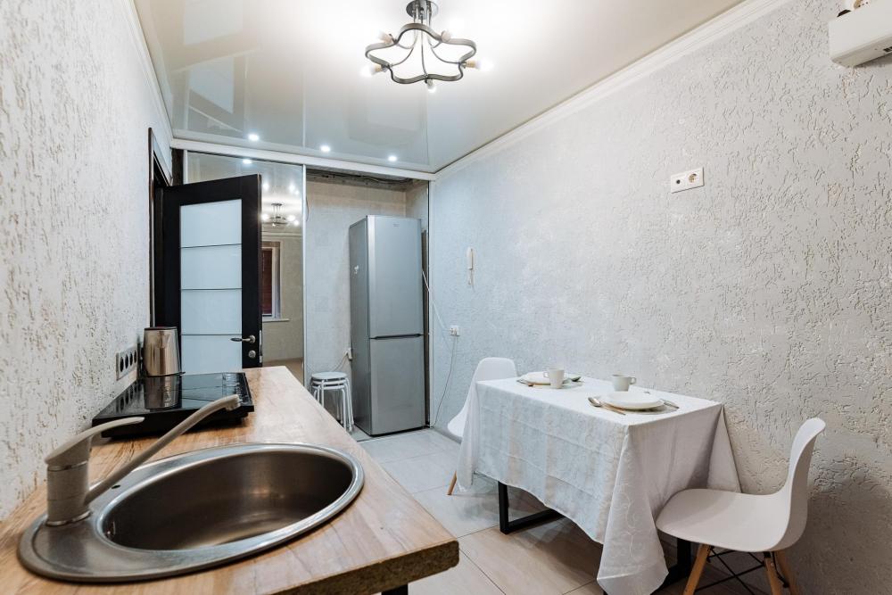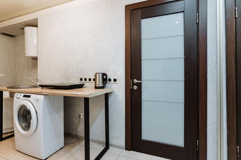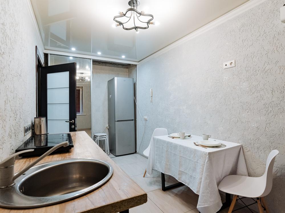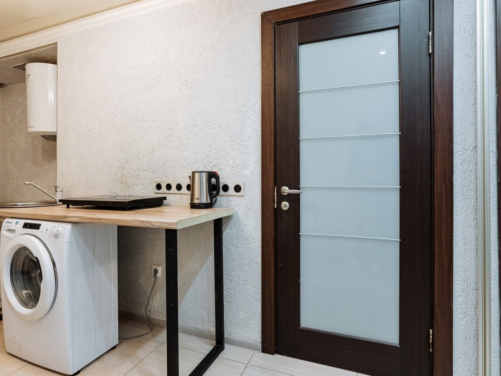 Имеется всё необходимое для комфортного проживания: Wi-Fi и Смарт ТВ, постельное белье, плед и дополнительные подушки, кондиционер, телевизор, холодильник, стиральная машина, электрочайник, плита для приготовления, посуда, минимальный набор продуктов (сахар, чай, кофе, небольшой набор круп). Горячая вода в квартире всегда, не зависимо от графика отключения.