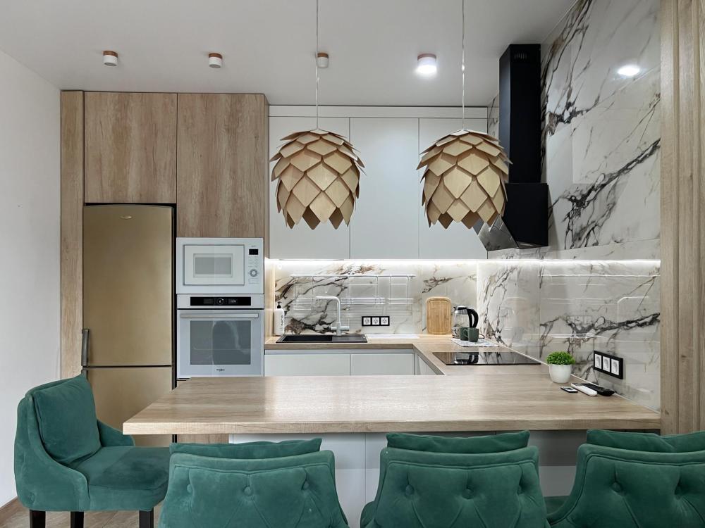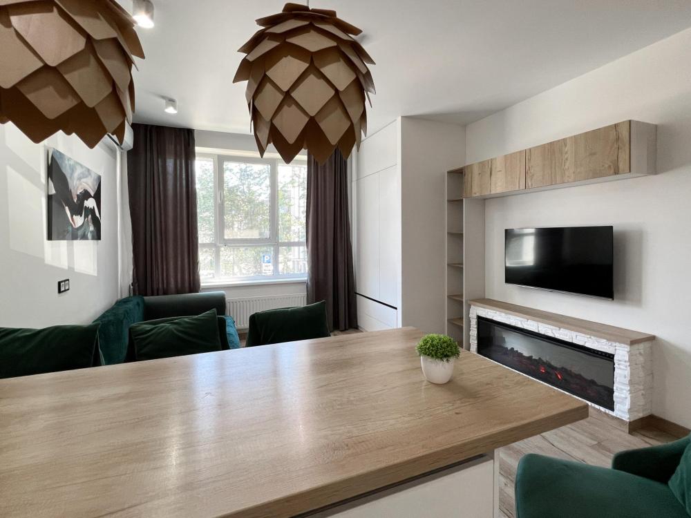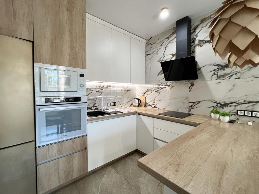 В квартире: двуспальная кровать king-size, двухспальный диван(раскладывается), постельное белье(сатин) и полотенца(хлопок), 2 телевизора СМАРТ -ТВ, холодильник, микроволновая печь, варочная поверхность, духовой шкаф, чайник, фен, утюг, сушилка для белья, гладильная доска, WI-FI