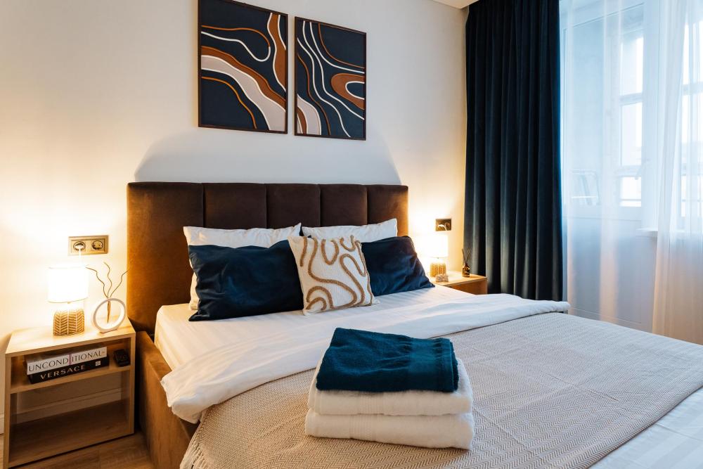 *** В КВАРТИРЕ: — Двуспальная кровать и двуспальный диван-кровать — Оборудованная кухня (холодильник, газовая плита, микроволновая печь, чайник) — Стиральная машина, фен, утюг, сушилка для одежды — Набор посуды и столовых принадлежностей — ТВ и высокоскоростной Wi-Fi — Шампунь, гель для душа, жидкое мыло — Кофе, сахар — Кондиционер Каждому гостю предоставляется полотенца. Замена белья и полотенец - при бронировании свыше 7 суток бесплатно. В иных случаях за дополнительную плату.