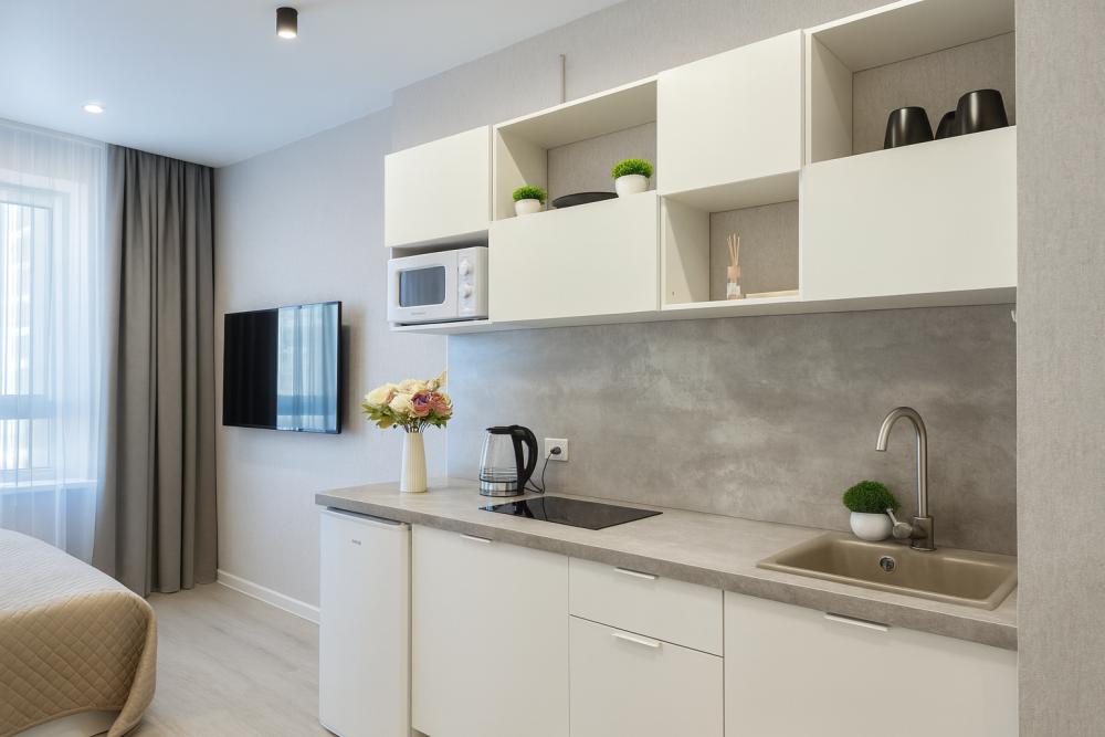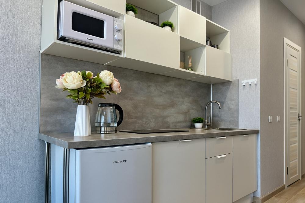 В студии есть всё для вашего комфорта: - двуспальная кровать с удобным матрасом 140*200 см, - телевизор СМАРТ-ТВ, бесплатный высокоскоростной Wi-Fi - кухонная зона со всем необходимым: холодильник, микроволновка, индукционная плита, электрочайник, посуда и кухонная утварь, а также соль, сахар, чай, кофе, специи - фен, полотенца для каждого гостя, косметические средства (шампунь, гель для душа, жидкое мыло) - стиральная машина, сушилка, утюг и гладильная доска - дом оснащен датчиками дыма