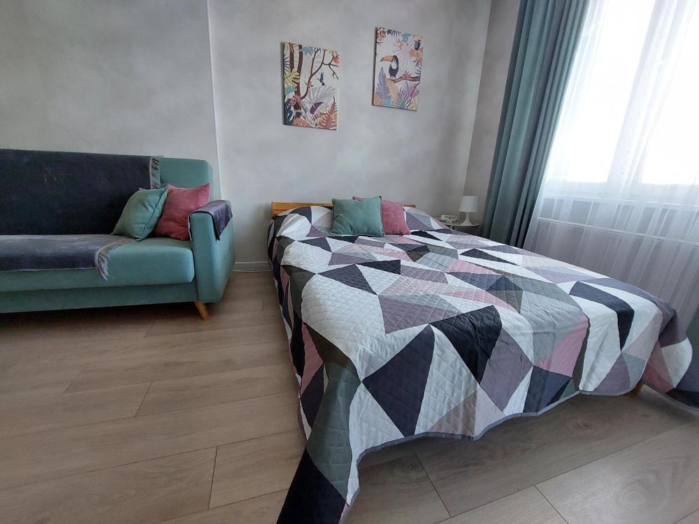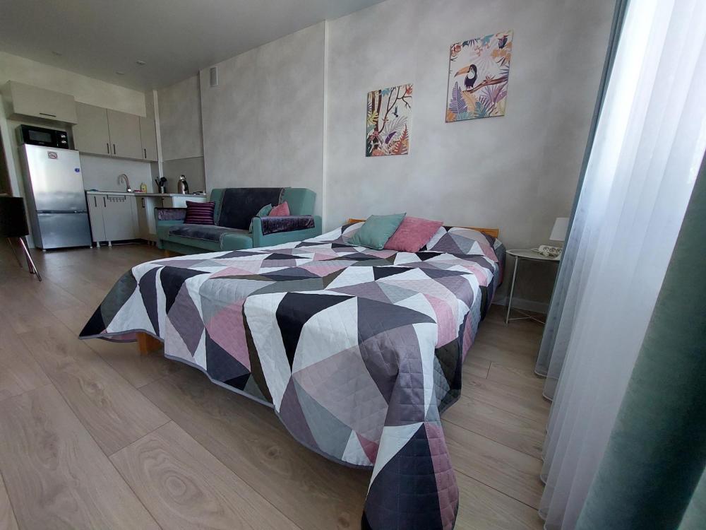 Апартаменты студия на 18 этаже для 4 гостей. Вид на лес, на город. Спальные места: диван и двуспальная кровать. Кухня оборудована необходимой посудой и техникой. К услугам гостей постельное белье, полотенца, стиральная машина, утюг.
