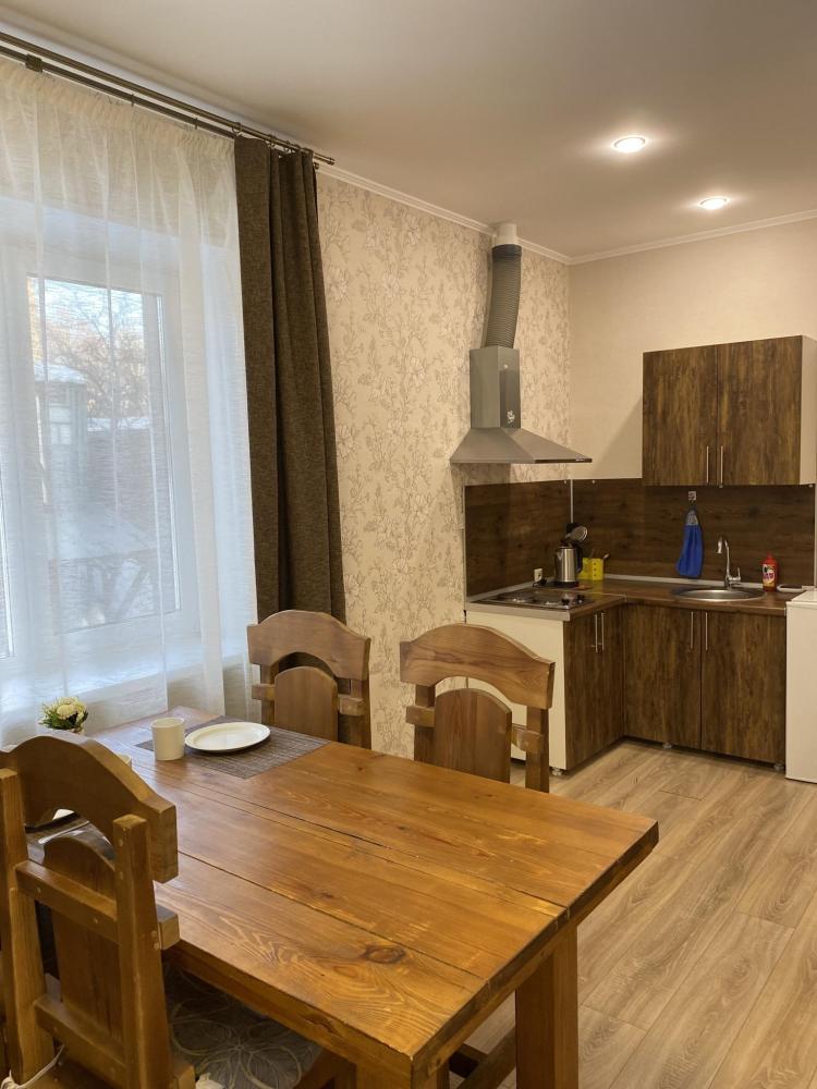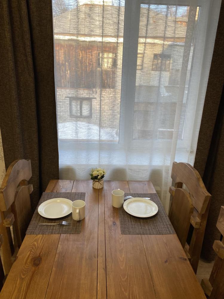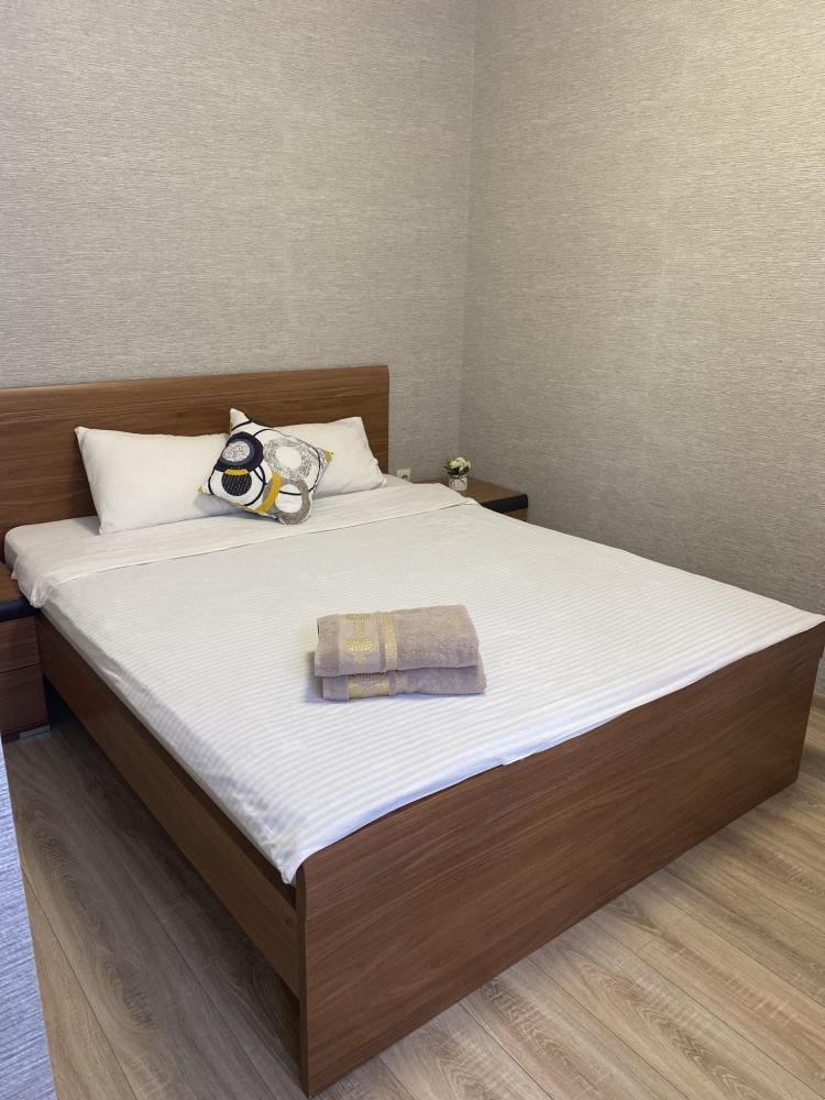 Апартаменты оснащены двуспальной кроватью (доп.место - кресло-кровать), телевизором, кондиционером, холодильник и полностью оборудованной кухней, обеденной зоной (стол+стулья), а так же собственной ванной комнатой.