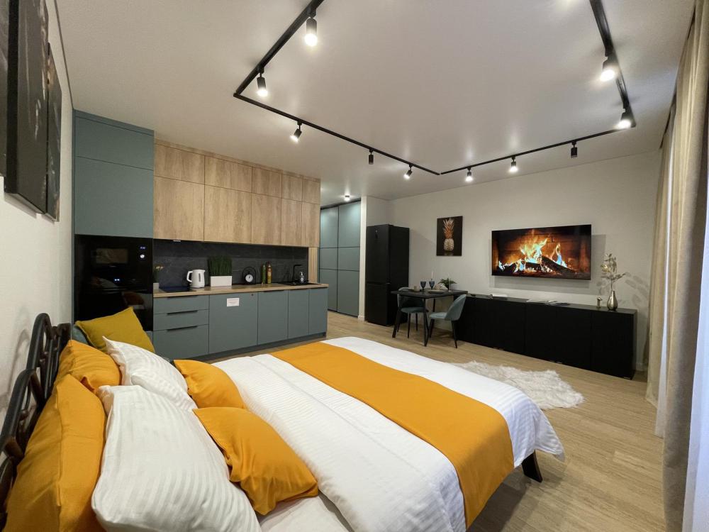 Техническое оснащение квартиры: - широкая двуспальная кровать - раскладывающийся удобный двуспальный диван - Wi-Fi бесплатно - ЖК телевизор с кабельным телевидением и SMART TV - хлопковое белое постельное белье и полотенца - душевой набор - посуда для приема и приготовления пищи, столовые приборы - холодильник, микроволновая печь, варочная поверхность, чайник - стиральная машина автомат, фен, утюг, гладильная доска, сушилка