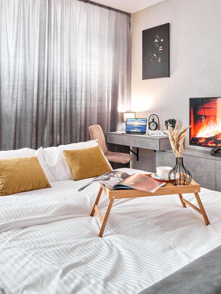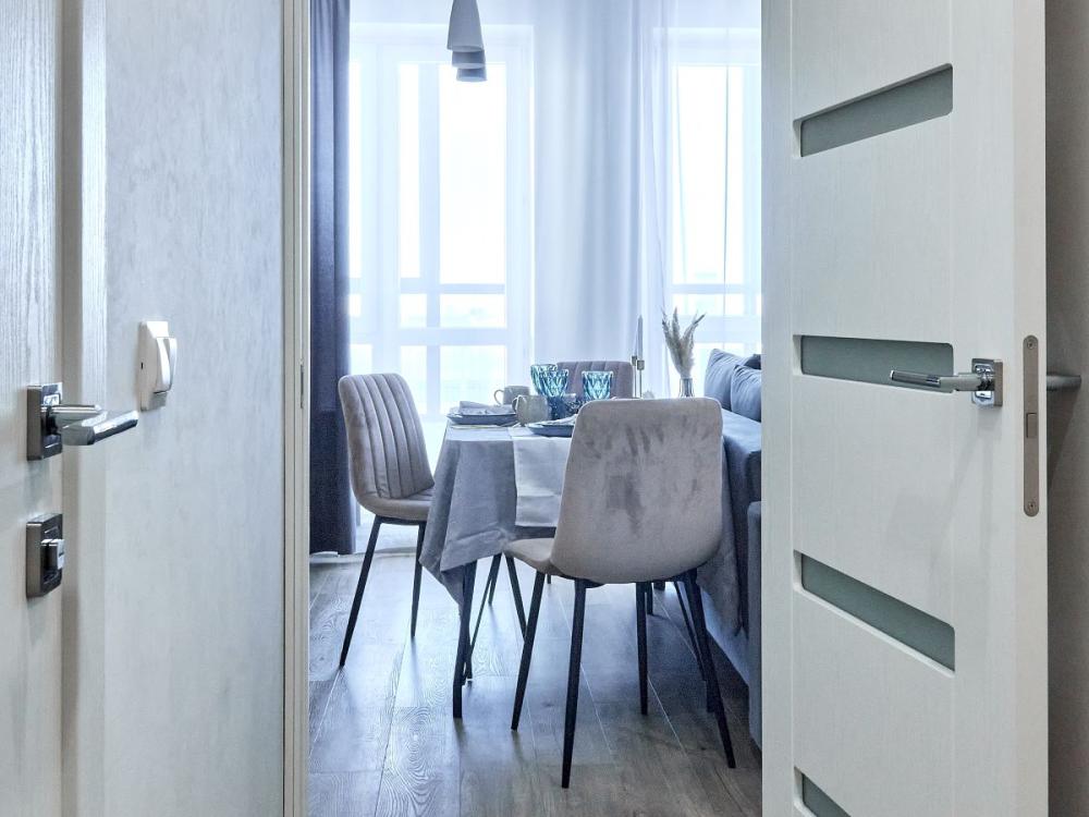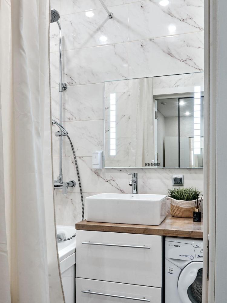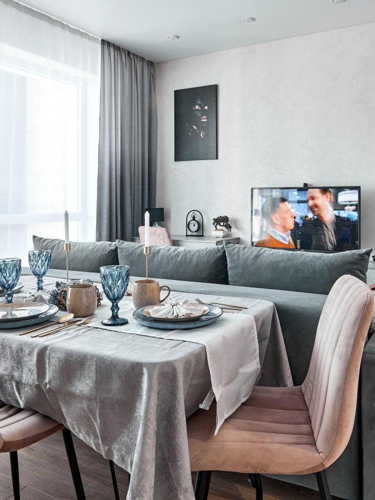 Студия в ЖК «Видинеевский» с вместимостью до 2 гостей. В квартире есть все, что нужно для комфортного проживания: раскладной диван, постельное белье, полотенца, посуда, микроволновка, телевизор, Wi-Fi, гигиенические и гладильные принадлежности, стиральная машина, холодильник, фен, кондиционер.