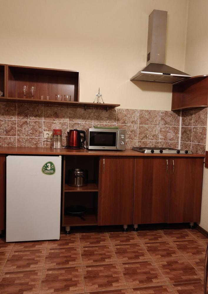 Люкс с кухней - великолепный компромисс между ценой и удобством. Оснащение: 1 двуспальная кровать или 2 раздельные кровати, кухня, платяной шкаф, ванная комната, оборудованная душевой кабиной, санузел, телефон, ЖК телевизор.