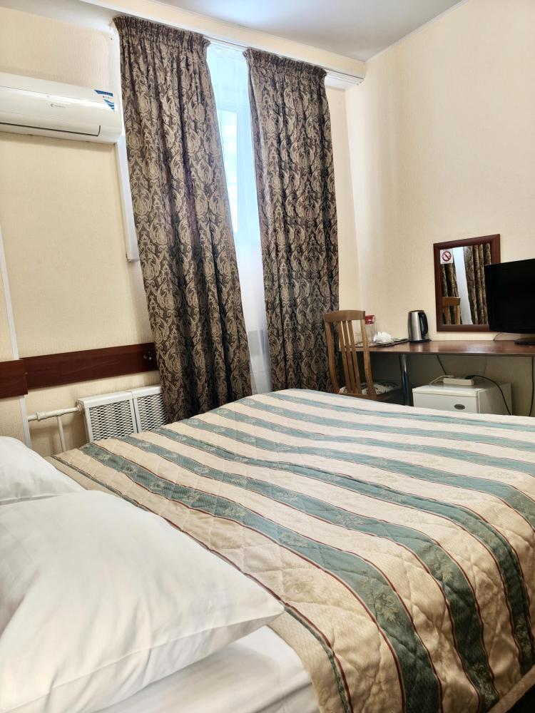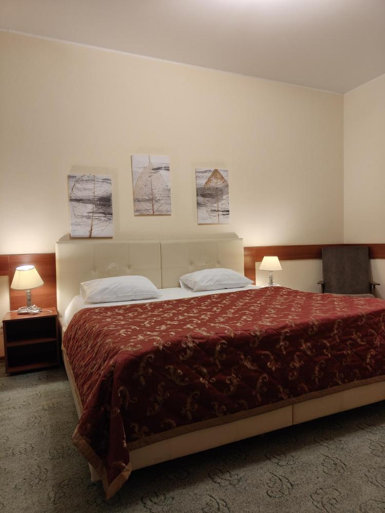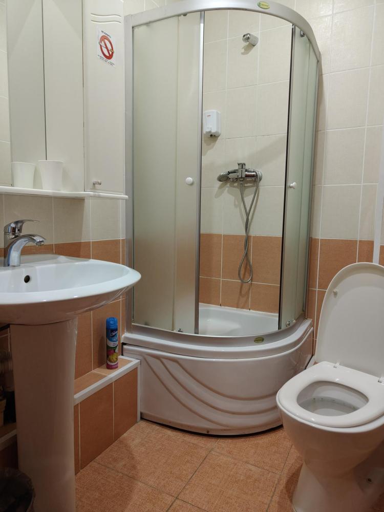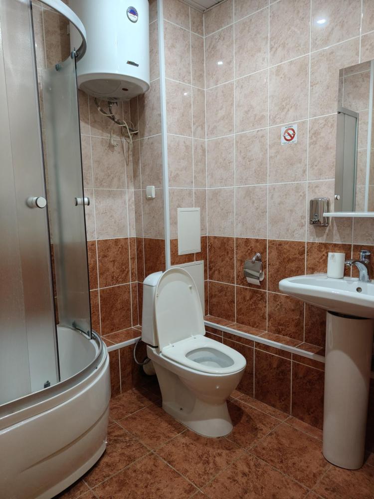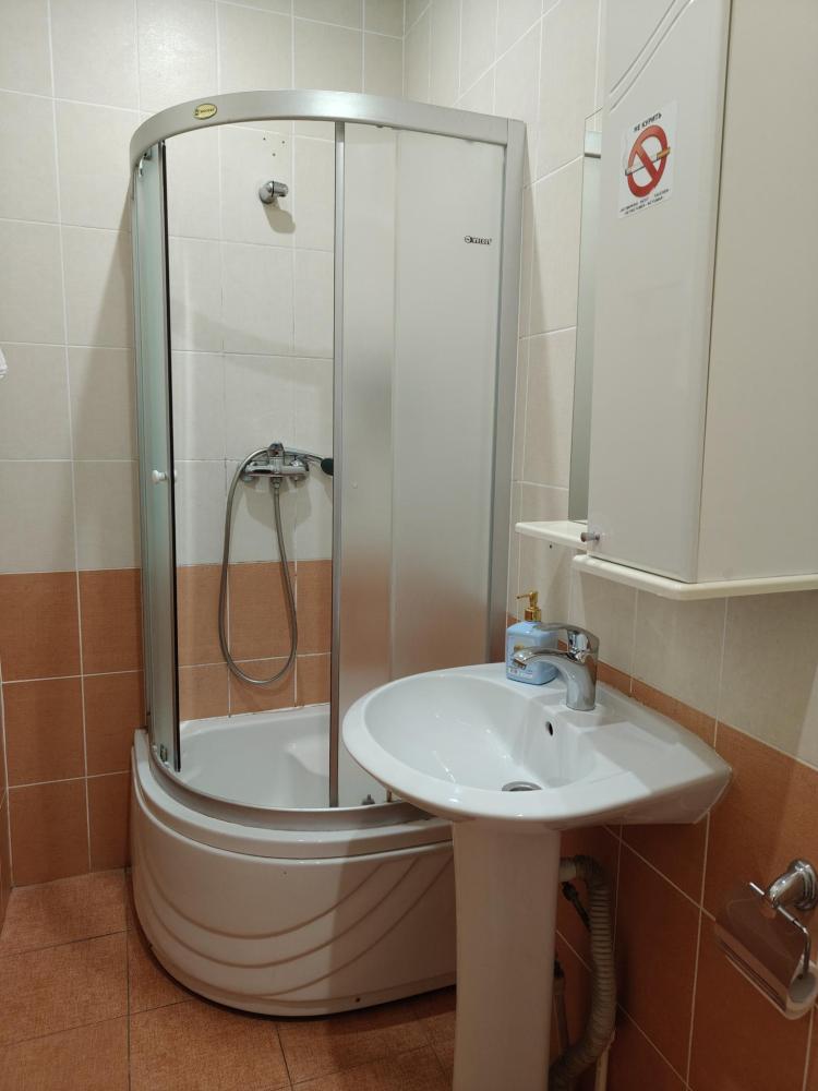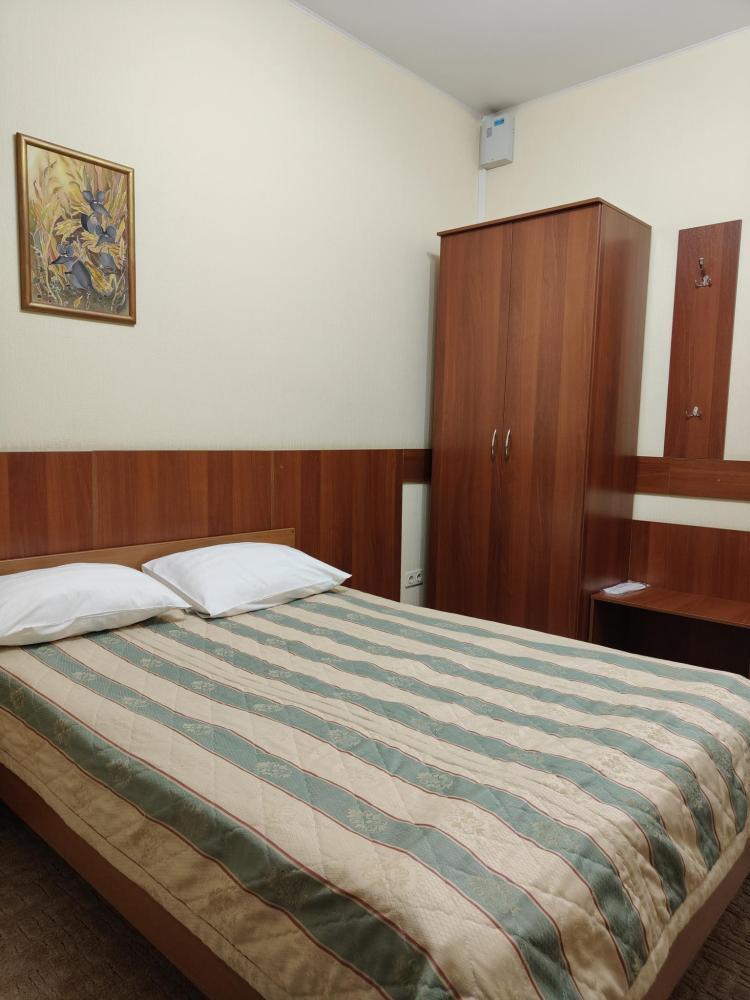 Комната с одной двуспальной кроватью. В комнате имеются: платяной шкаф, ванная комната, оборудованная душевой кабиной, санузел, телефон, ЖК телевизор.