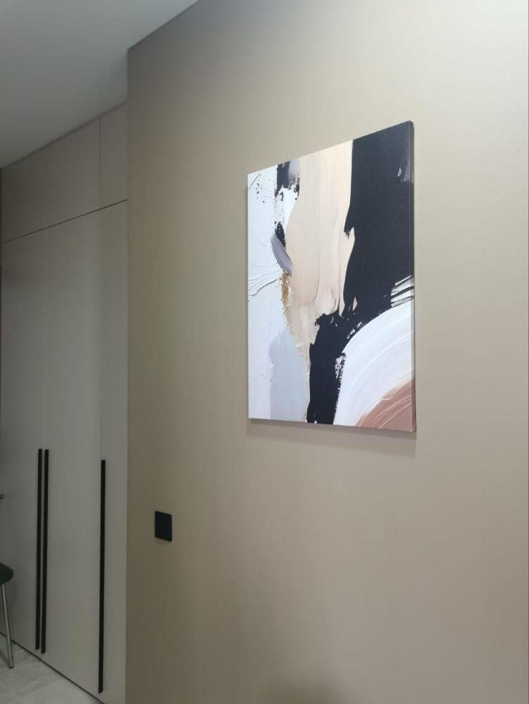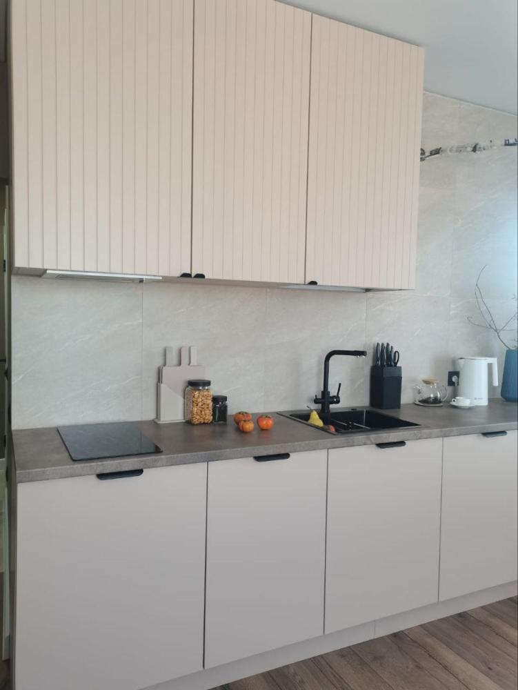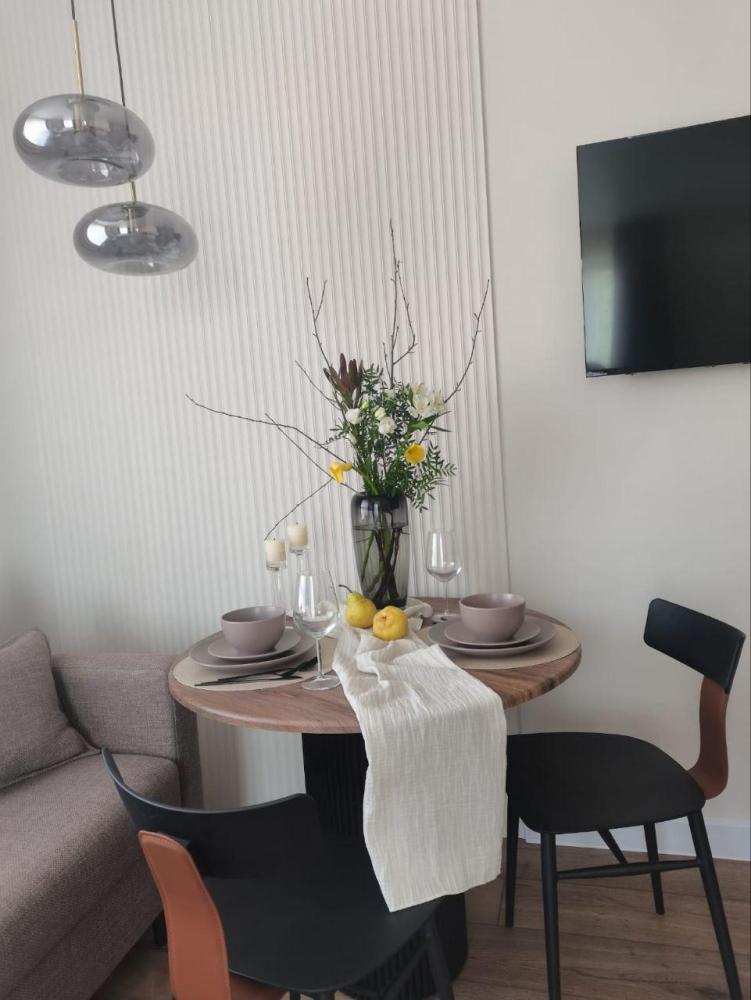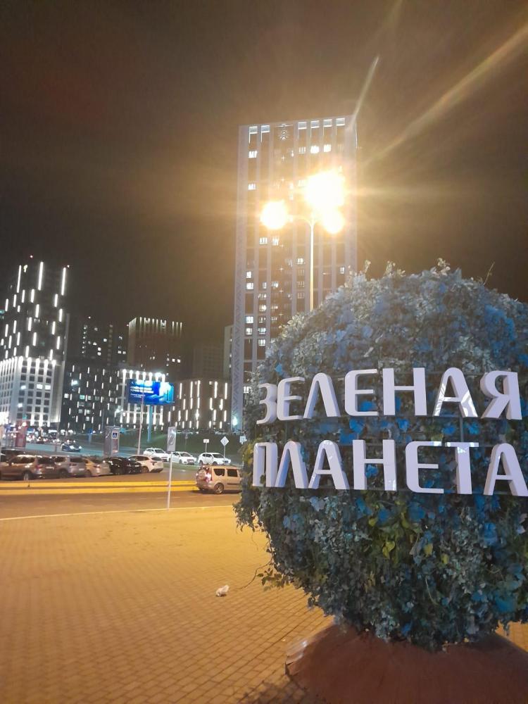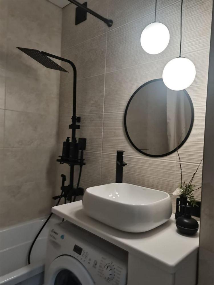 Просторная студия с панорамным видом на ночной город. В номере собственный сан узел, кухня и небольшой балкон. Возможно размещение от 1 -2 гостей (двуспальная кровать 160 см) до 3 (отдельный диван)